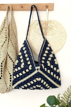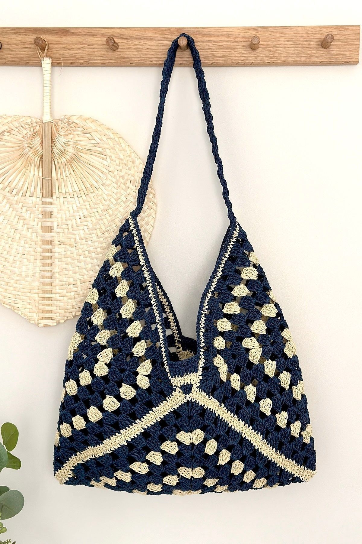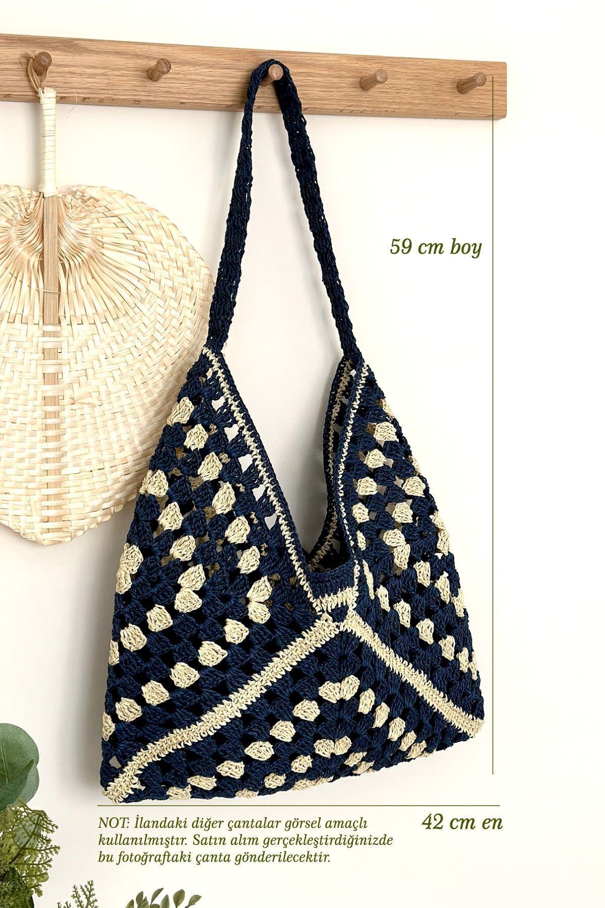 Özel olarak seçilen yüksek kaliteli hasır ip kullanılarak elde örülen bu özel tasarım çanta, dayanıklılığı ve sağlamlığı ile öne çıkıyor.