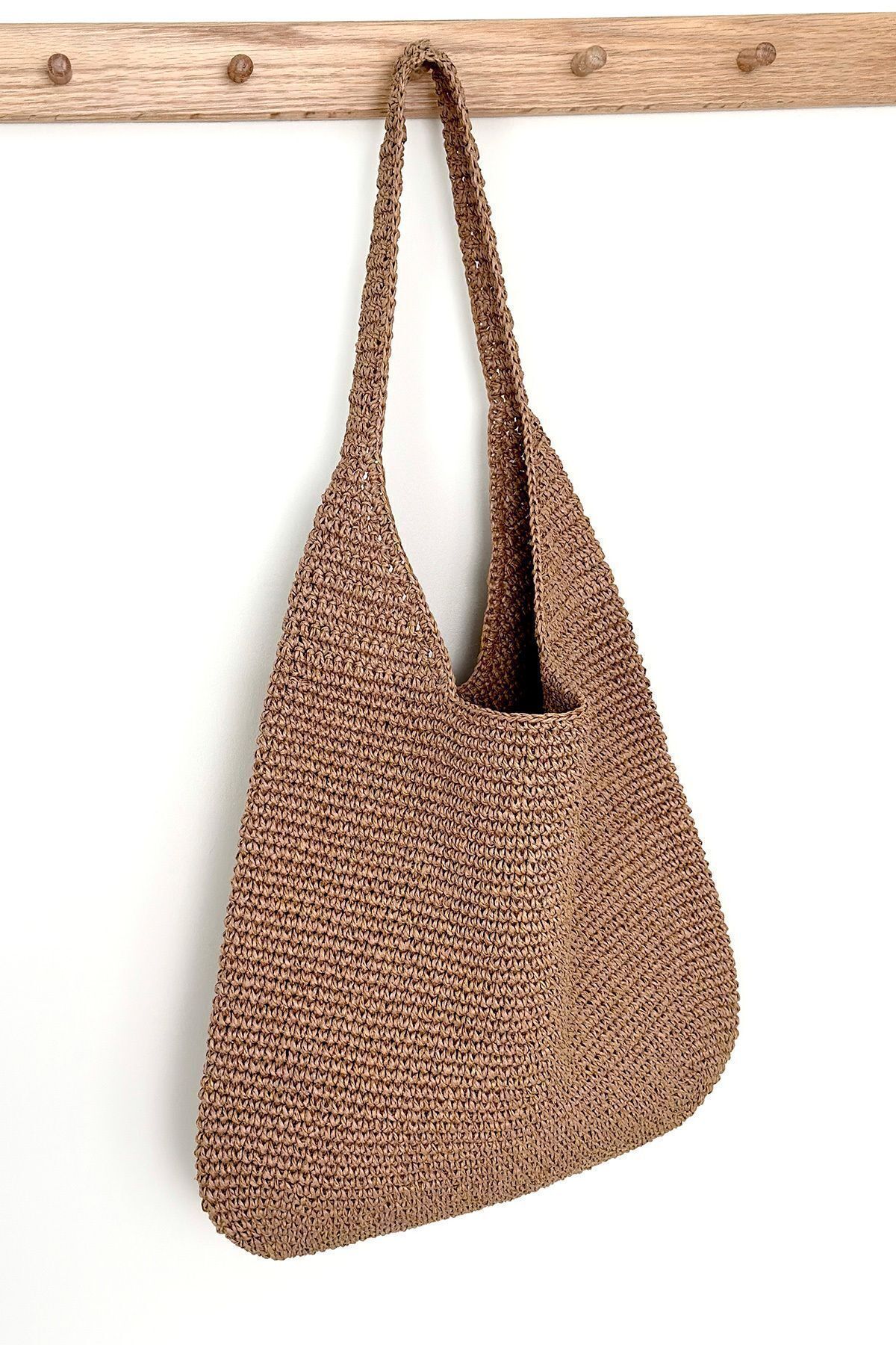 BECCASTYLE Hasır Çanta, Hasır Omuz Çantası, Yazlık Çanta, Plaj Çantası, El Yapımı Örgü Çanta, Hasır Rengi Çanta