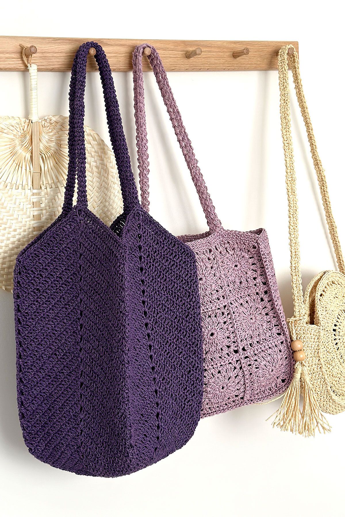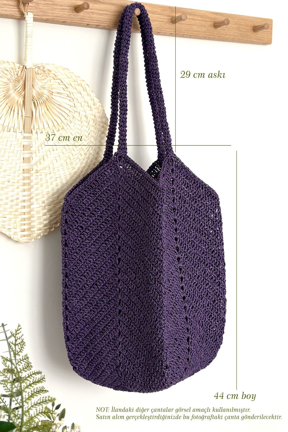 BECCASTYLE Hasır Omuz Çantası, Yazlık Çanta, Rafya Çanta, Plaj Çantası, Örgü Çanta, Tote Çanta, MOR ÇANTA