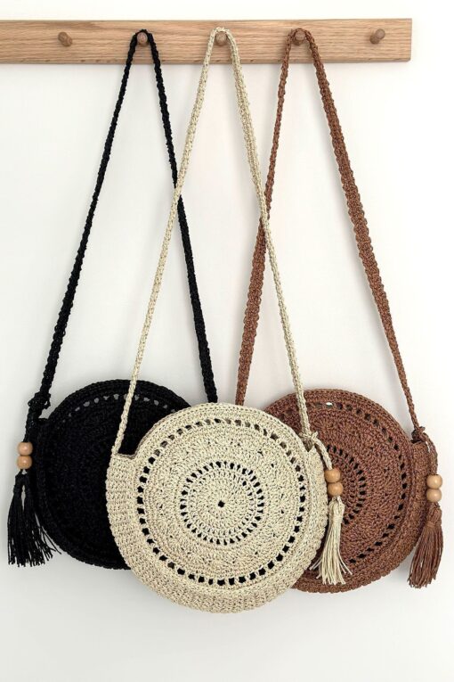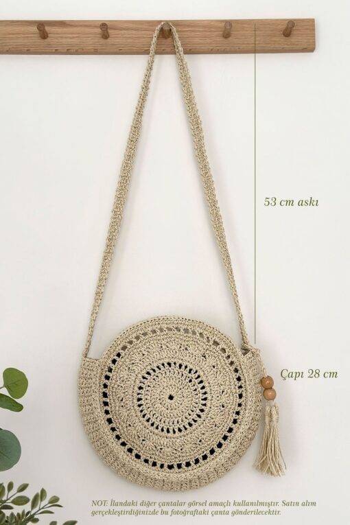 BECCASTYLE Yuvarlak Çanta, Makrome Çanta, Bohem Çanta, Püsküllü Hasır Çanta, Örgü Çapraz Çanta Krem Rengi Çanta Fiyatları, Özellikleri ve Yorumları