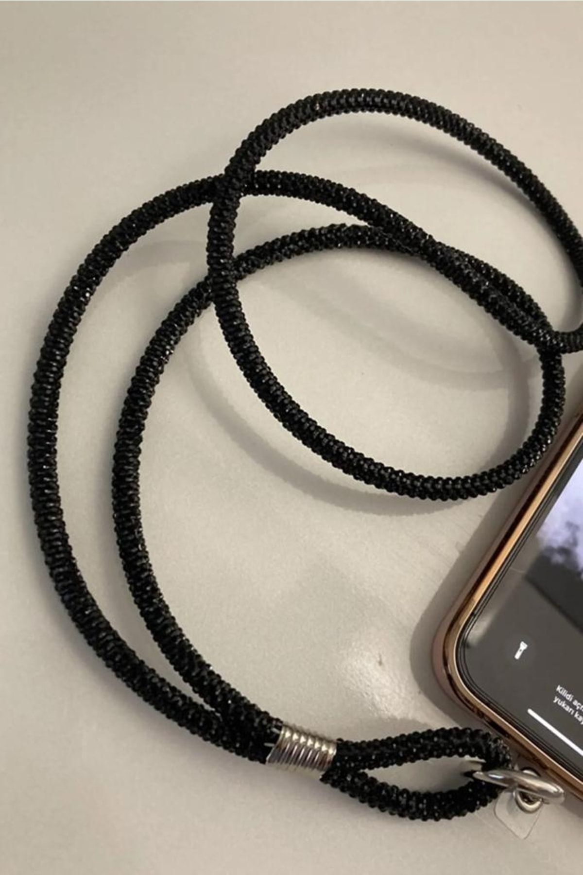 Beilys Swarovski Taşlı Siyah Ip Telefon Boyun Askısı