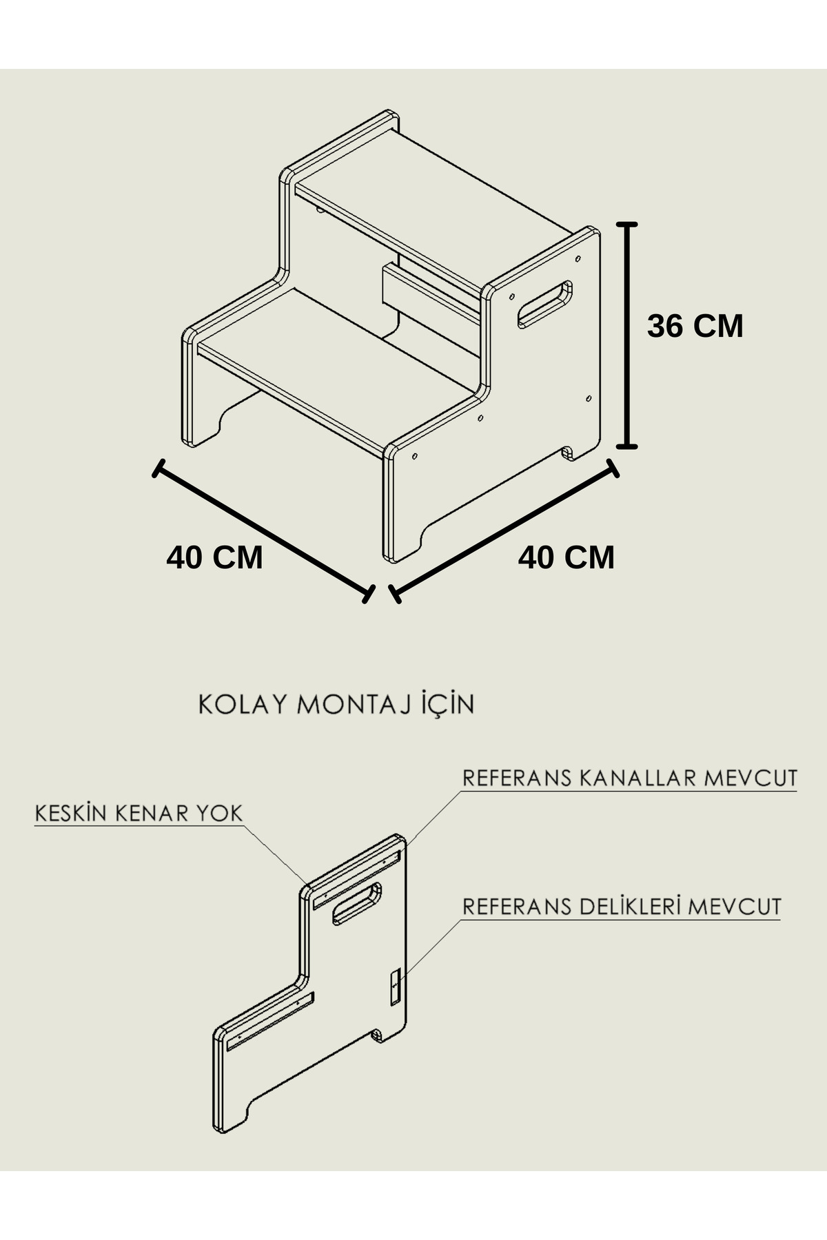 BELENDİ Kids Ahşap Basamak Tabure Çocuk Banyo Wc Lavabo Merdiven Yükseltici Eğitici Montessori