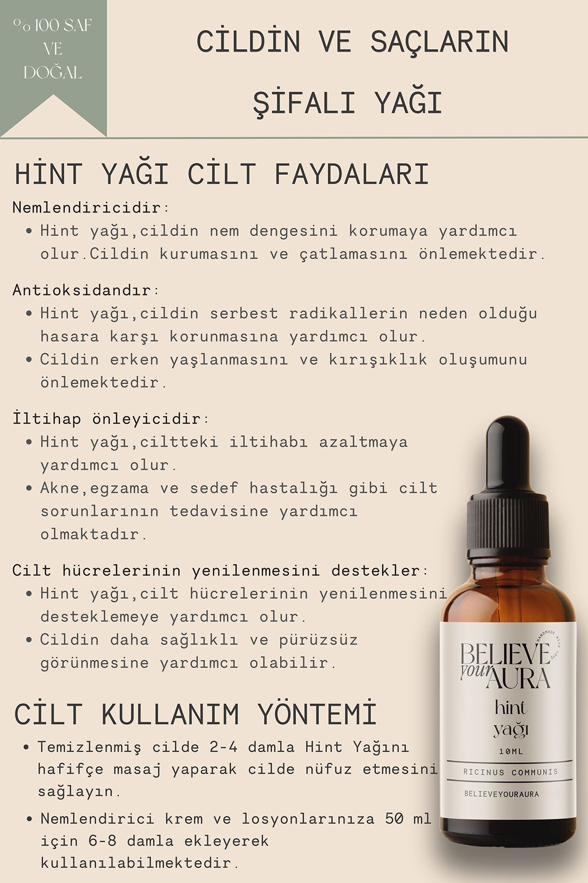 Believe Your Aura Hint Yağı – %100 Saf Ve Doğal Cilt Ve Saç Bakım Yağı – Castor Oil – 10 ml