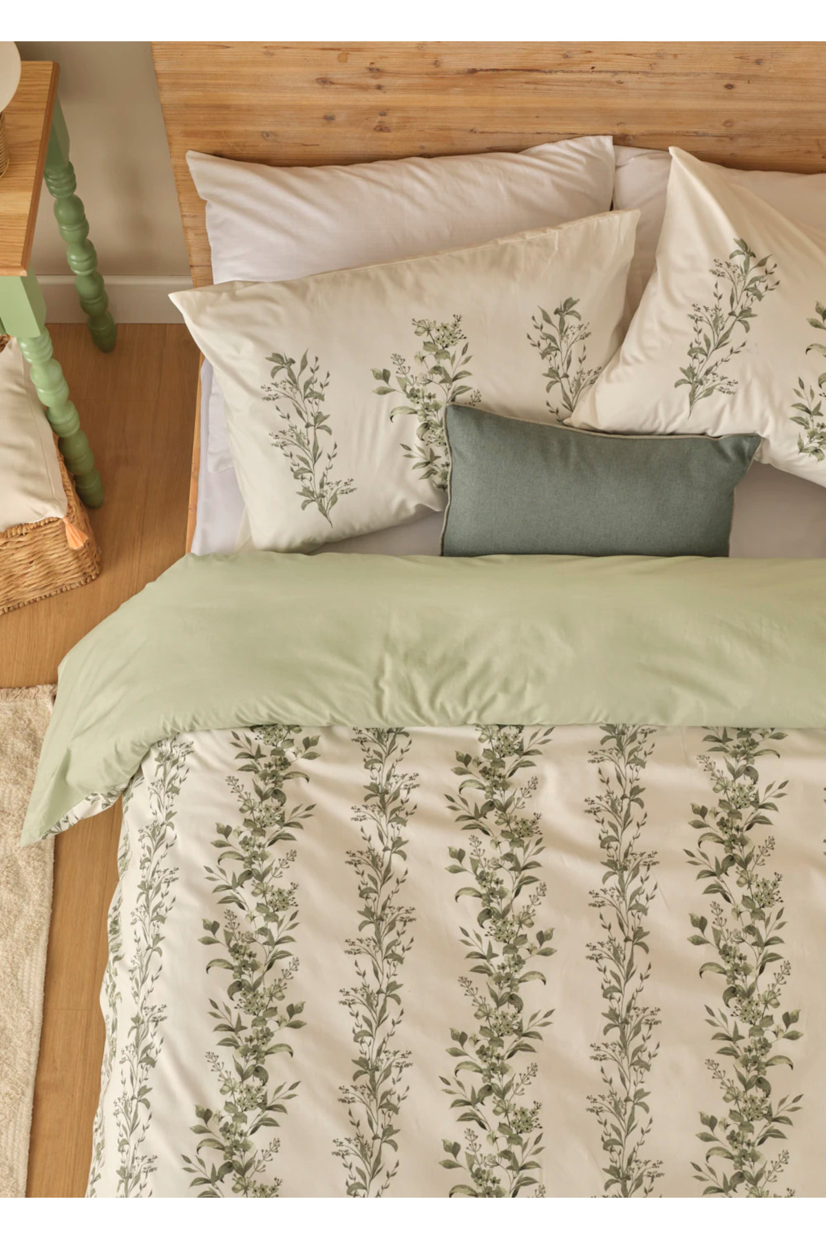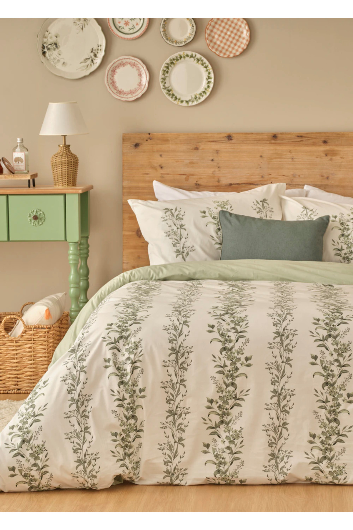Bella Maison %100 Pamuk Saten Flores King Size Nevresim Seti Açık Yeşil (240×220 cm)