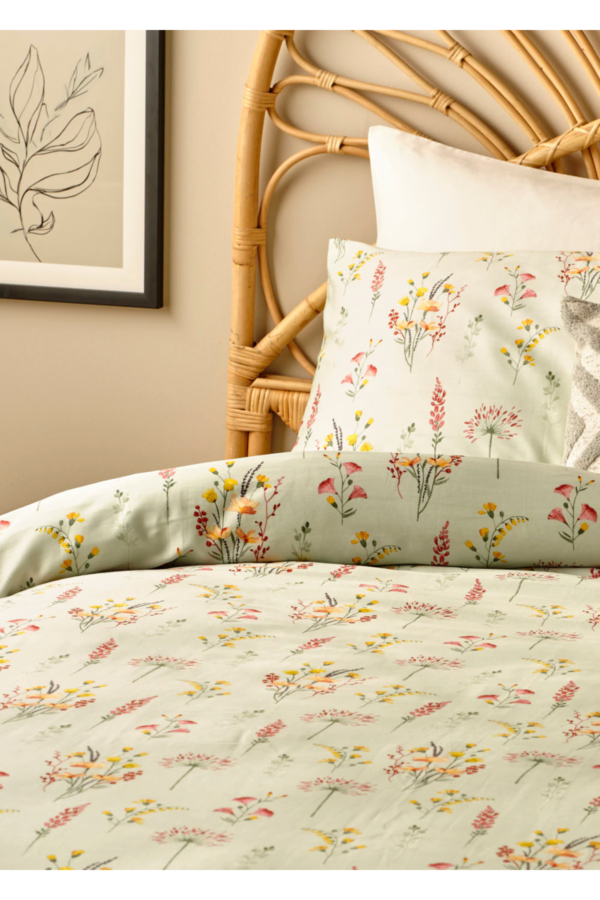 Bella Maison %100 Pamuk Saten Flores King Size Nevresim Seti Açık Yeşil (240×220 cm)