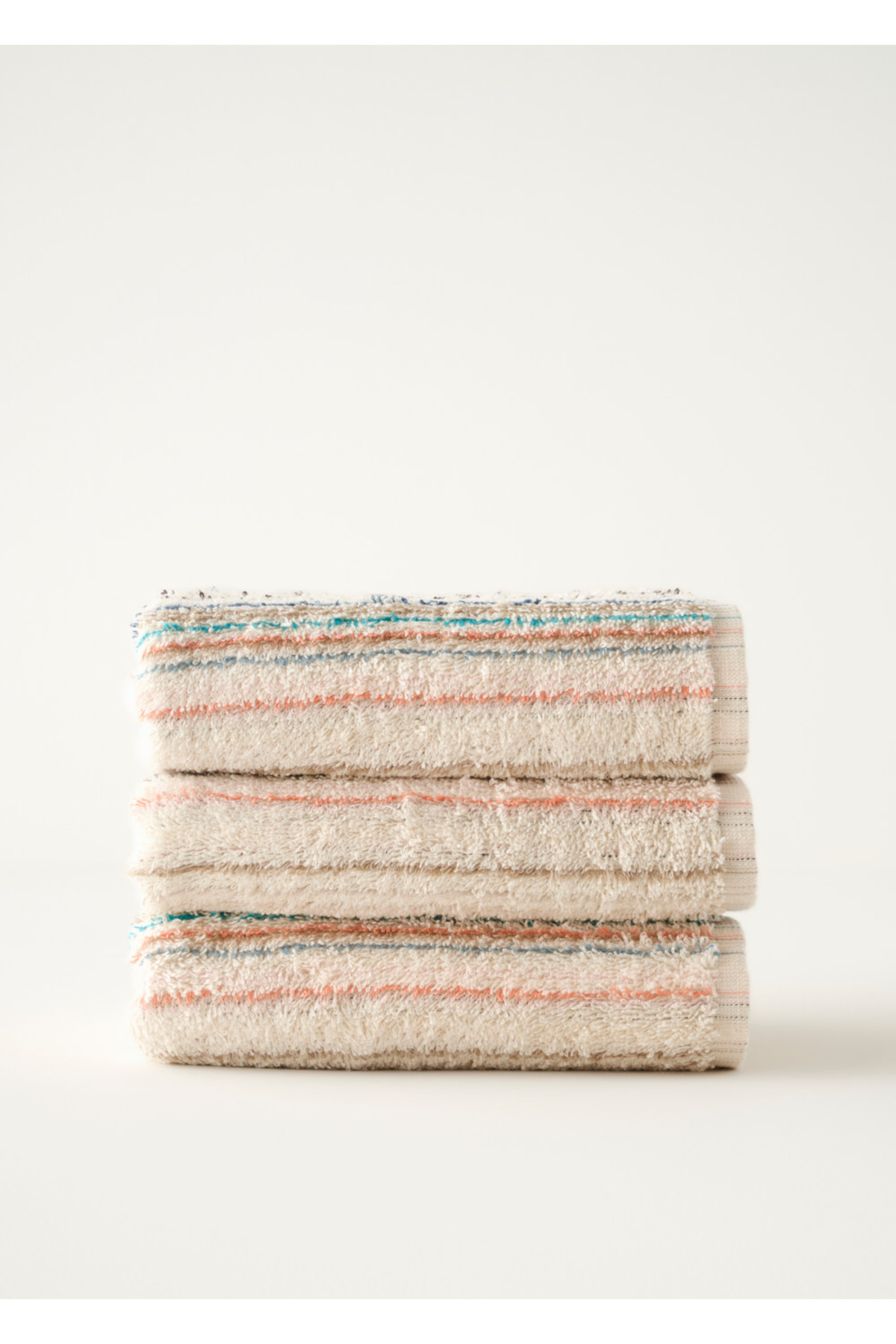 Bella Maison %100 Pamuk Stripe İpliği Boyalı 3’lü Yüz Havlusu Seti Krem (50×90 cm)