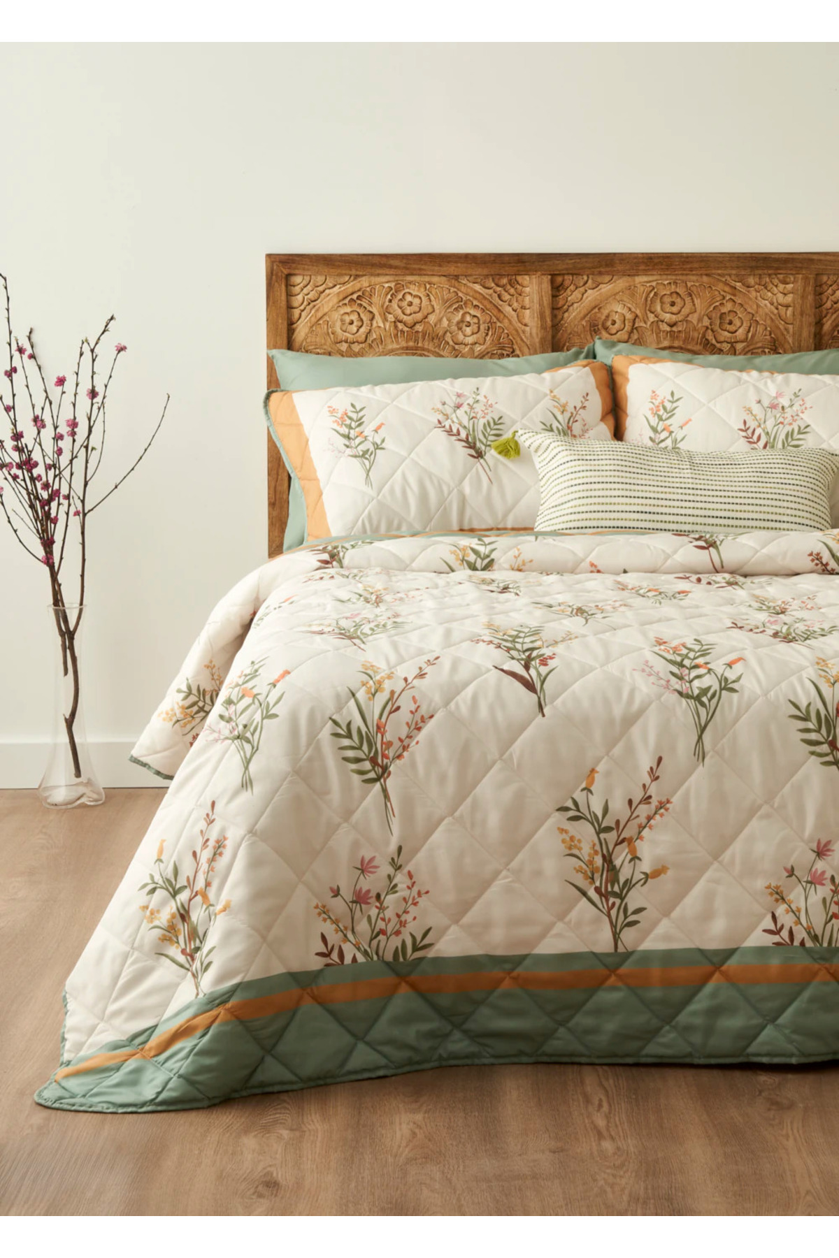 Bella Maison Flores Kapitoneli Çok Amaçlı Çift Kişilik Yatak Örtüsü Seti (240×220 cm)