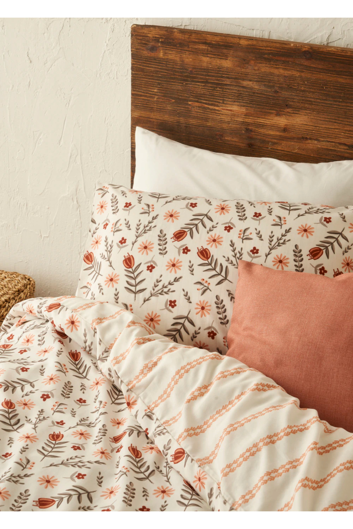 Bella Maison Florian Pamuklu Tek Kişilik Nevresim Seti Kiremit (160×220 cm)