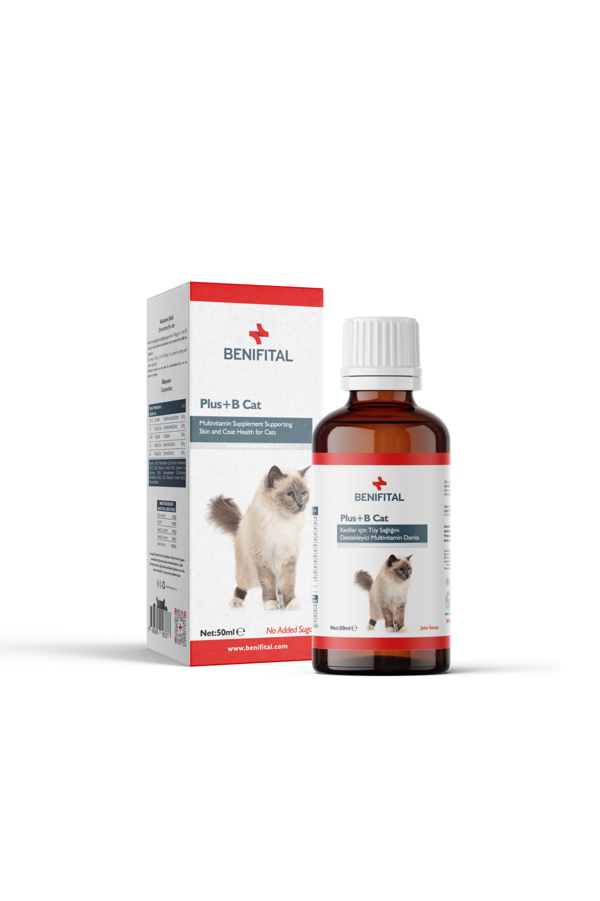 Benifital Plus+B Cat – Kediler İçin Tüy Dökümü Önleyici Multivitamin Damla 50 ml