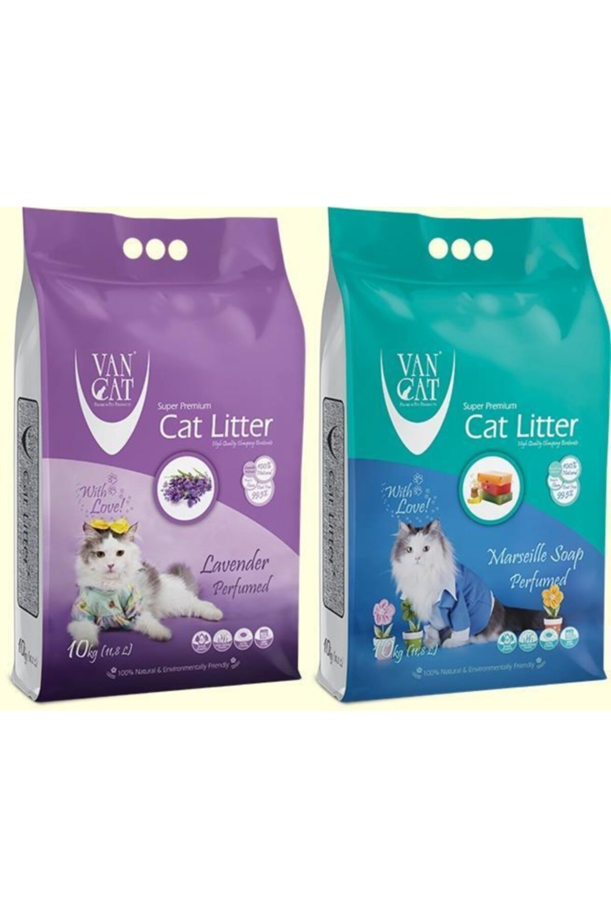Bentaş Van Cat Ince Tane Topaklanan Kedi Kumu Lavanta 10 Kg + Marsilya 10 Kg