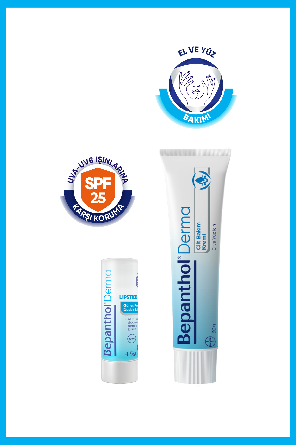 Bepanthol Cilt Kremi 30 gr Spf 30 Günlük Yoğun Nemlendirici Lipstik Dudak Kremi 4,5g – Günlük Yüz, Vücut Bakım