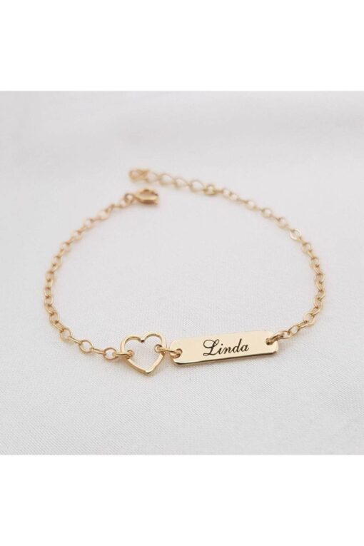 BERCHINE Kalp Detaylı Plaka İsimli Gümüş Bileklik