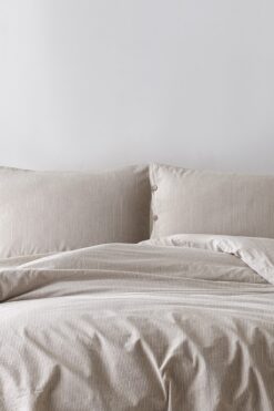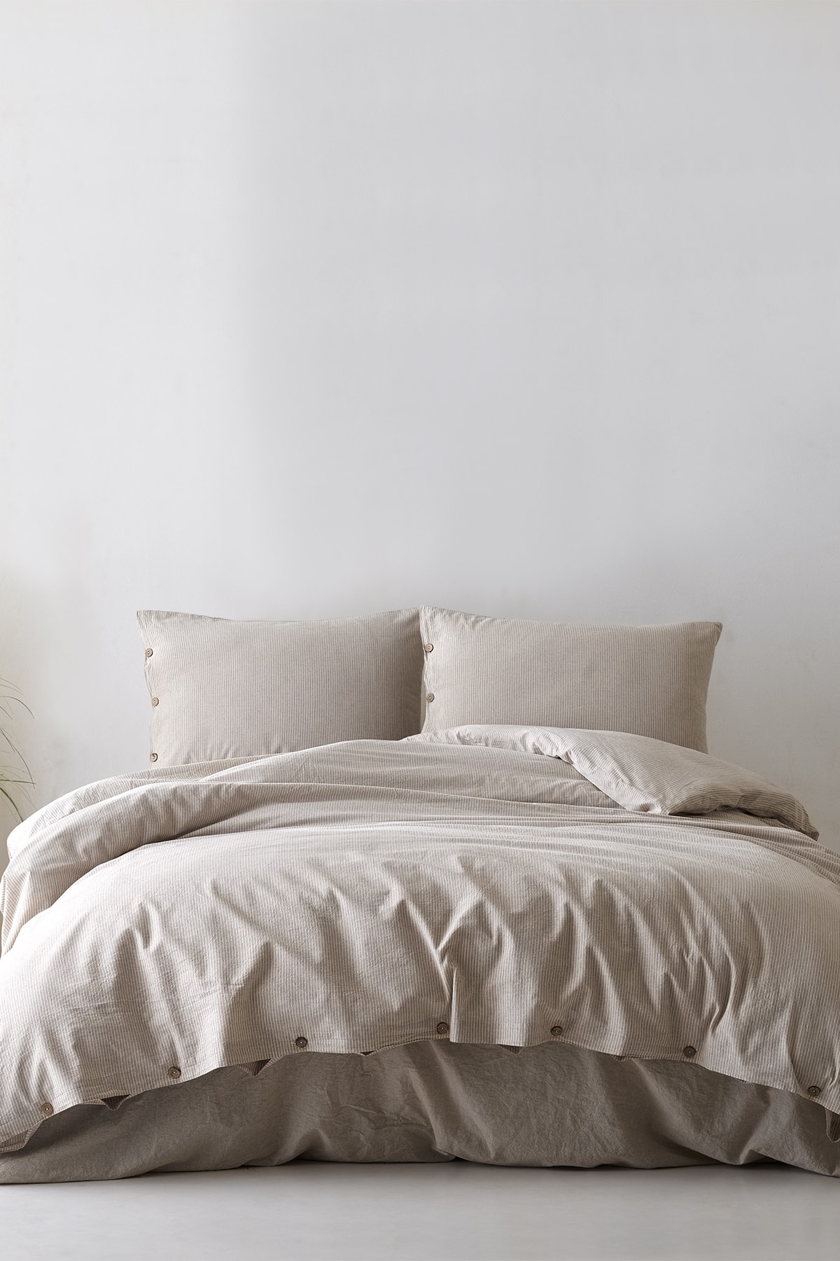 Berolige Shirt %100 Pamuklu Battal Boy Yıkamalı İplik Boya Çizgili Nevresim Takımı Kahverengi