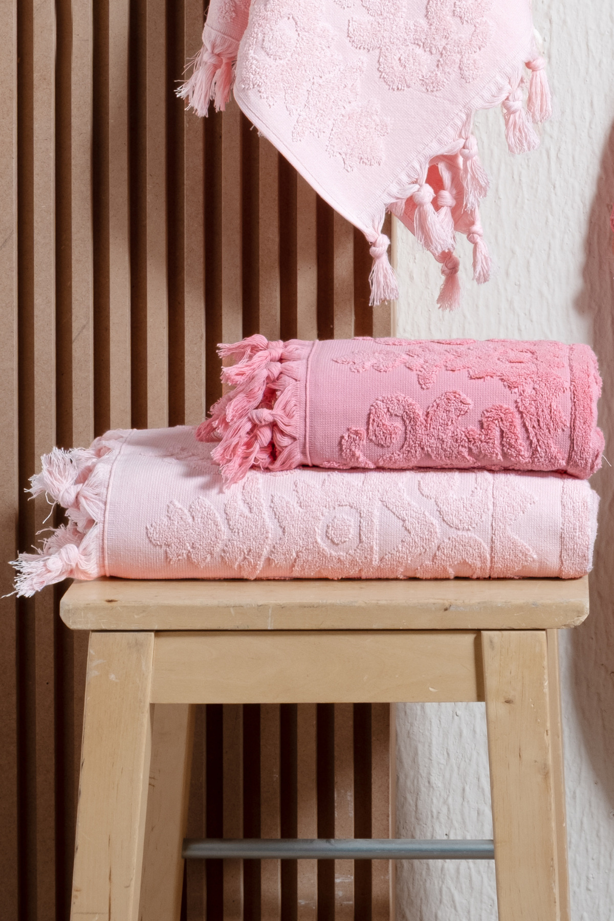 AYHANHOME 50x90 4'lü %100 Pamuklu Kadife Güpürlü Fiyonklu Desenli Havlu