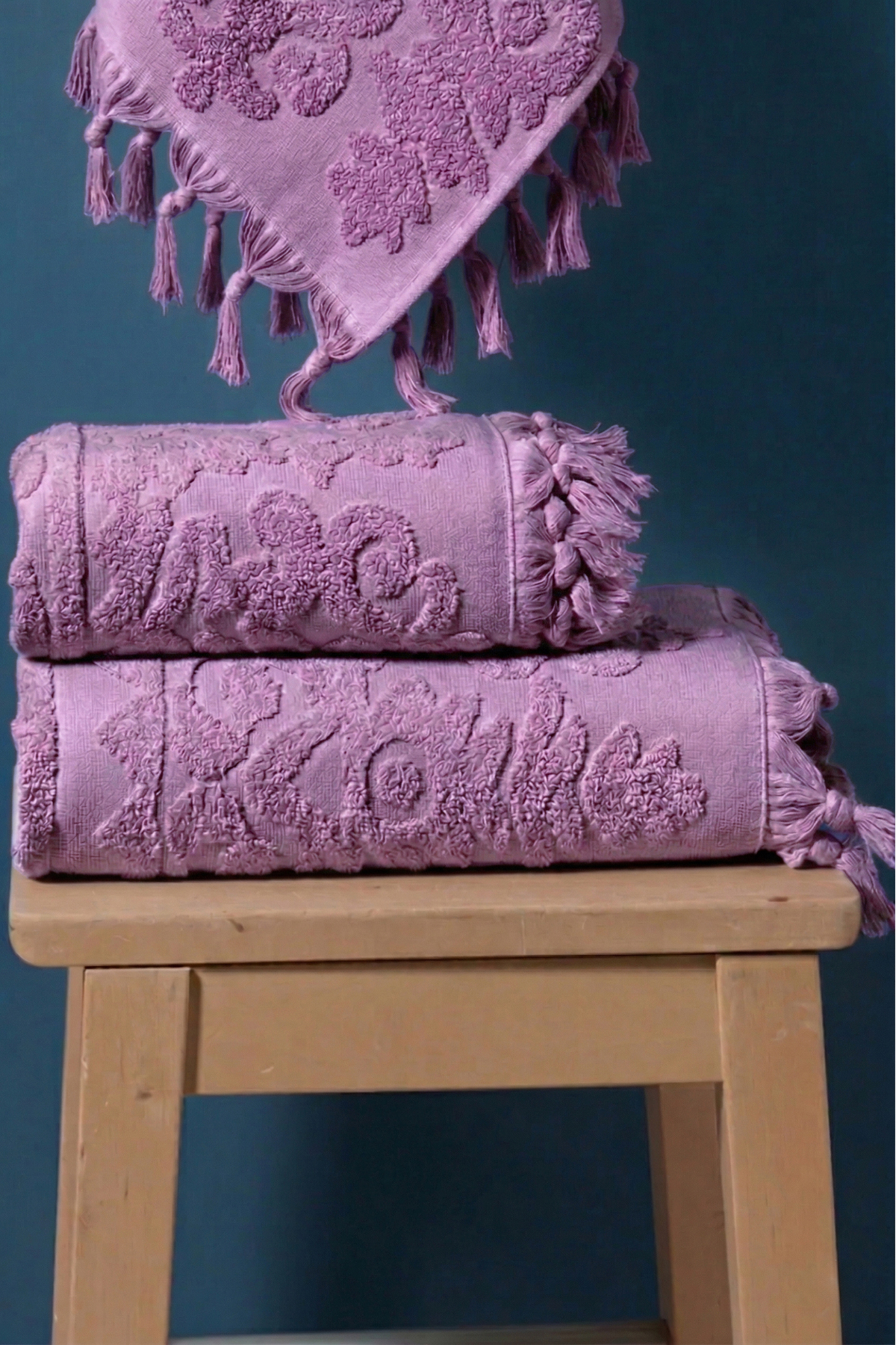 Bersay Tekstil %100 Pamuk 2’li Bağlamalı Lüks, Jakarlı, Çeyizlik Banyo Havlu Seti ( 1 Adet 50×90, 1 Adet 100×150 )