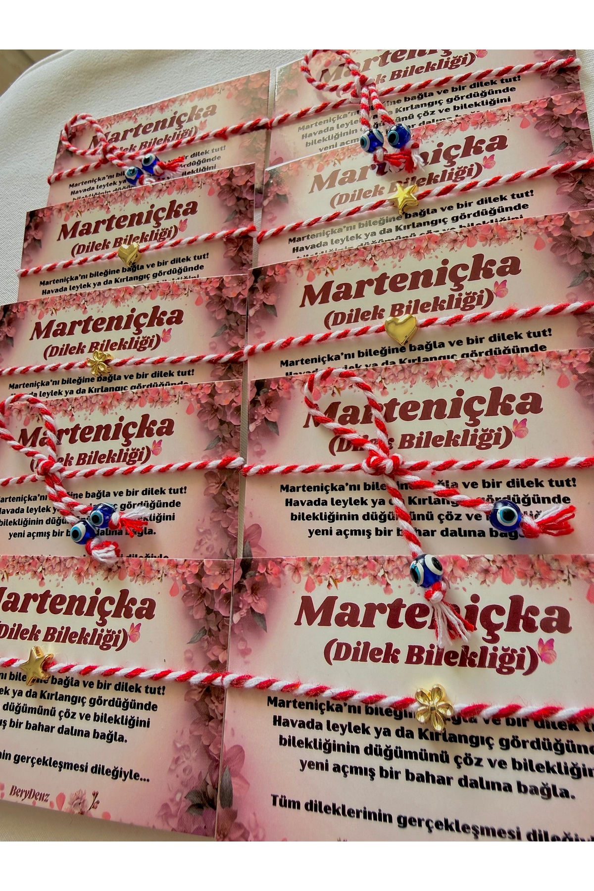 BeryDenz 10 adet Karma Figürlü Marteniçka Şans Bileklik Seti (10 Kart 10 Hediye Paketi)