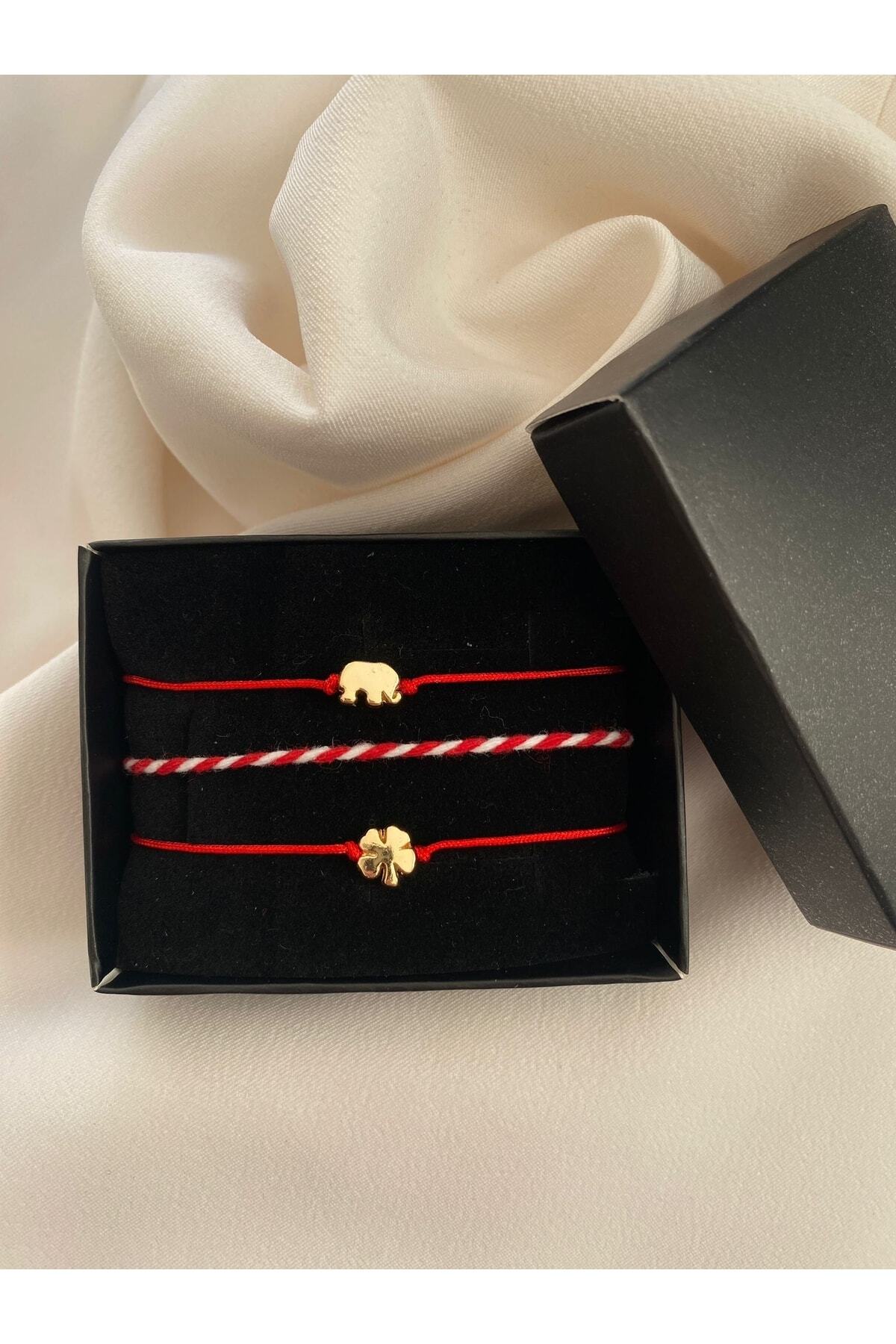 BeryDenz Kutulu Fil Yonca Ve Marteniçka Şans Bileklik Seti