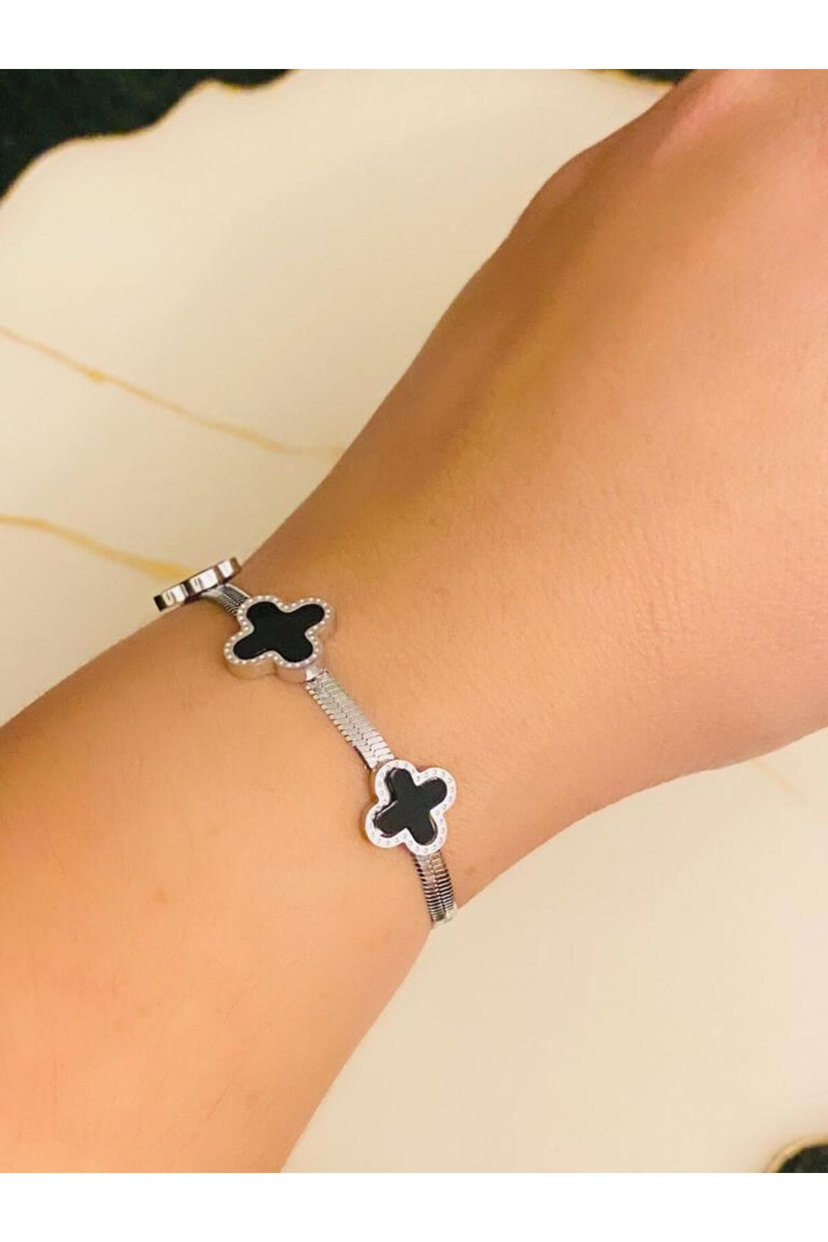Besito Aksesuar Marka Model 3 Yoncalı Asansörlü Çelik Bileklik