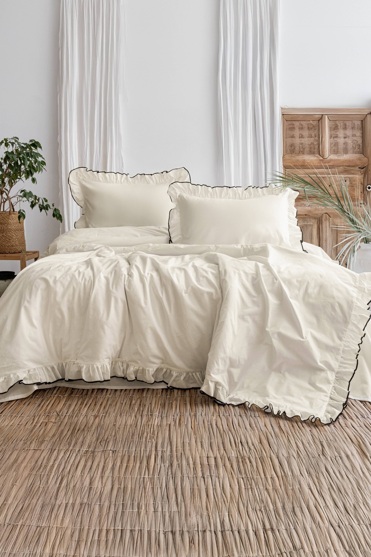 BESTİNA GOLD Çift Kişilik Nevresim Seti %100 Pamuklu Süs Overloklu Fırfırlı