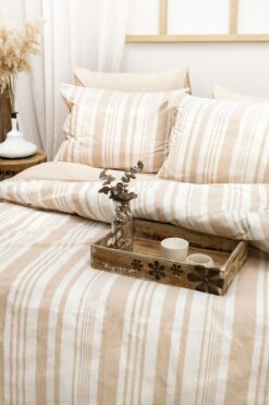 BESTİNA GOLD Harmony Hues İpliği Boyalı Doğal Çift Kişilik Nevresim Takımı (Çarşafı Lastikli)
