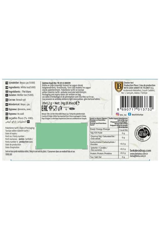 Beta Tea Beyaz Çay 20 Adet - Beta Whitea Collection ürünü ucuz fiyat, hızlı kargo ve kredi kartına 12 ay taksit imkanı ile hemen sitemizden sipariş verin.