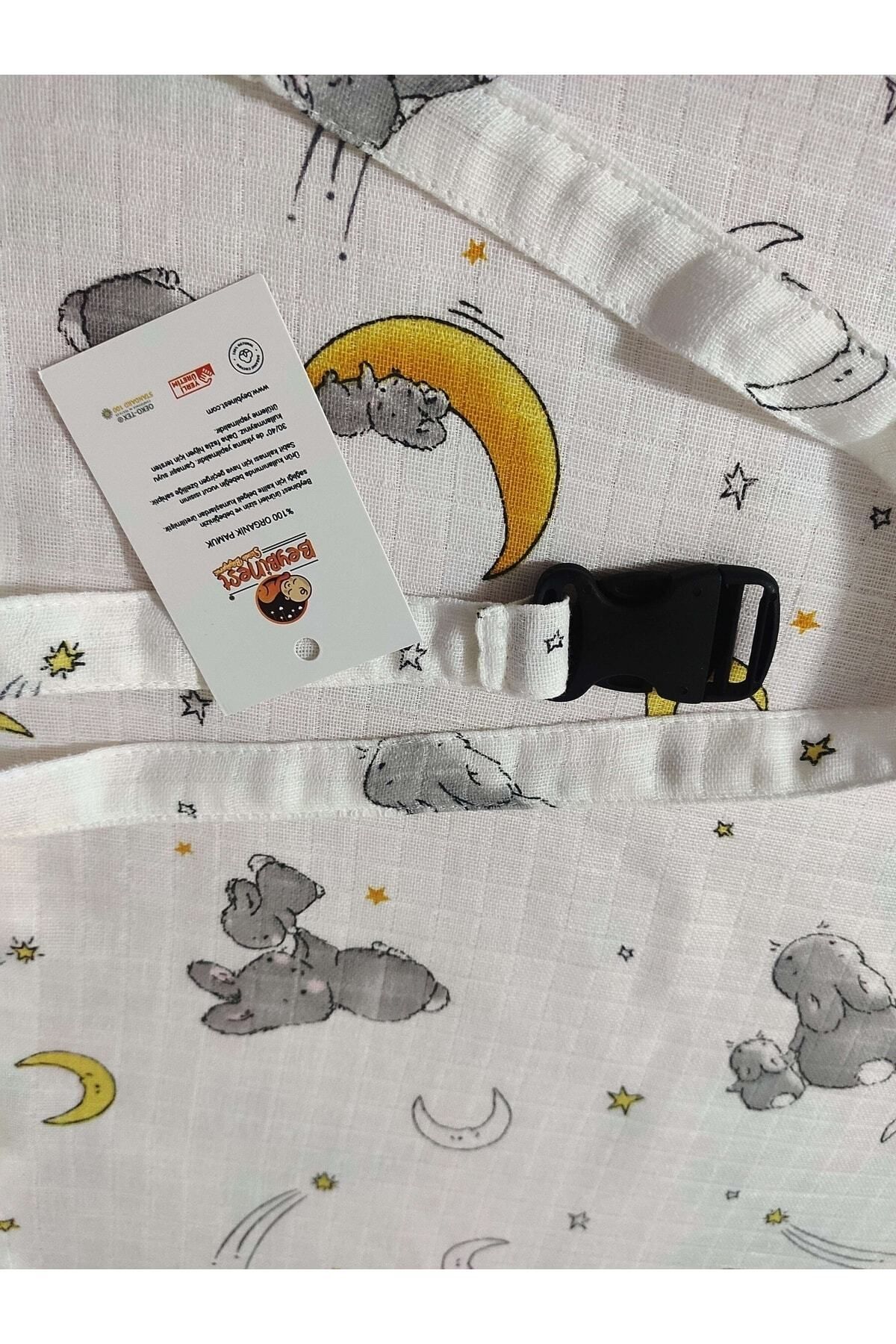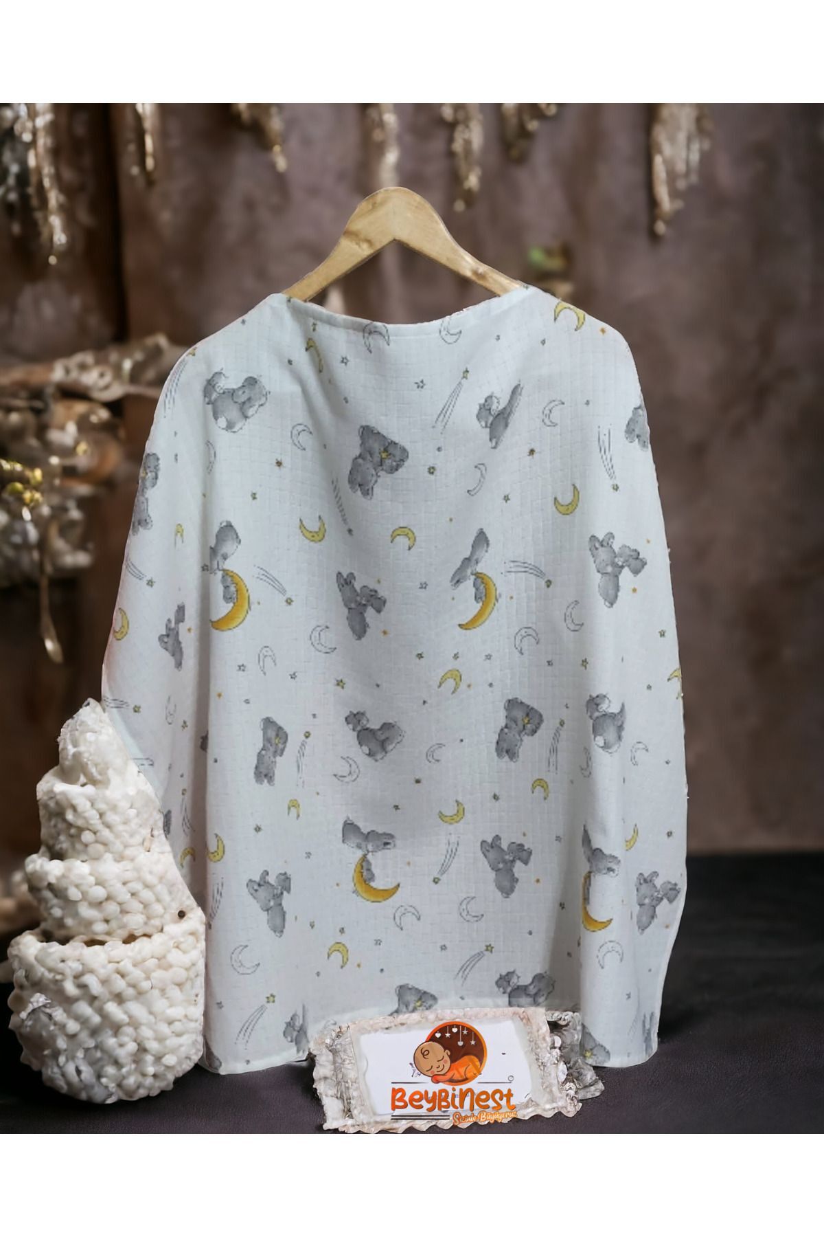 BeybiNest Balenli Müslin Emzirme Önlüğü 100×90 Cm Ayarlanabilir Boy Tavşanlar Emzirme Örtüsü