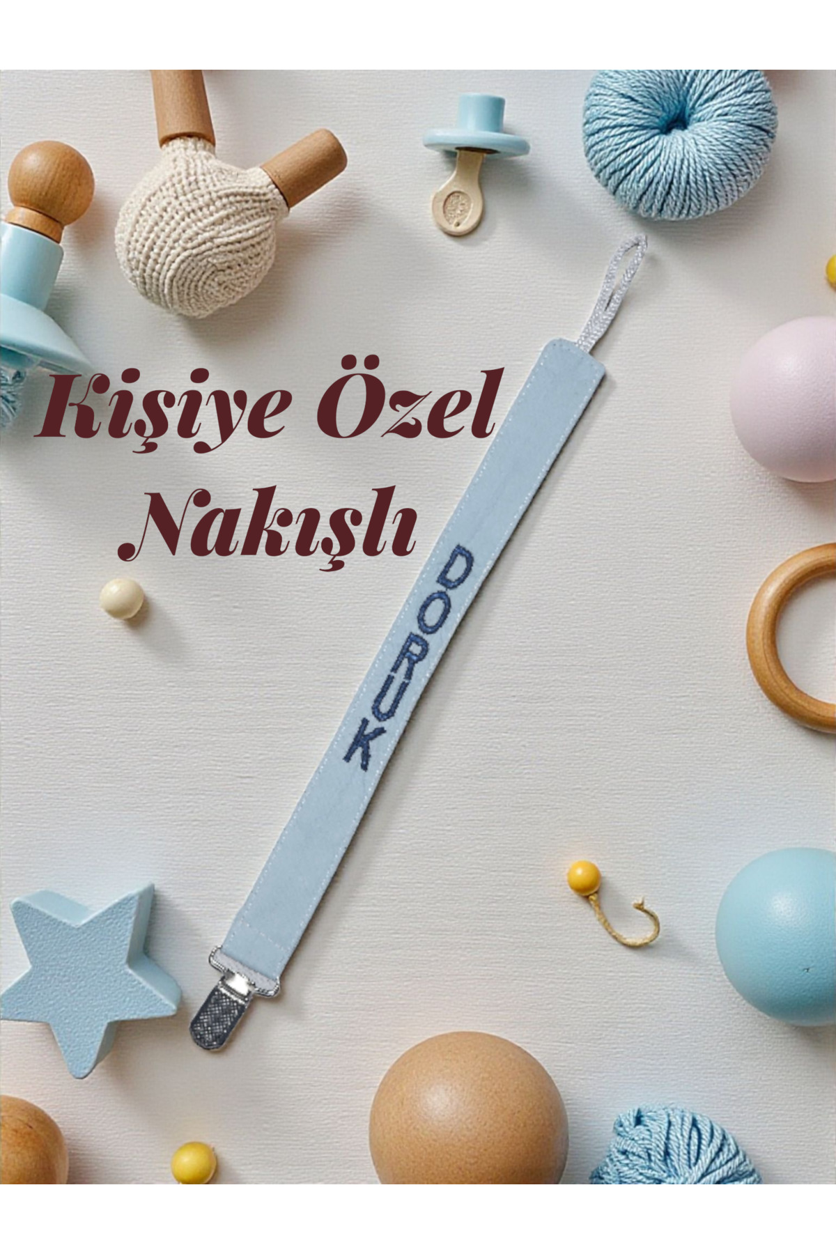 BeybiNest Emzik Tutucu Nakış İslemeli Bebe Mavisi Emzik Askısı