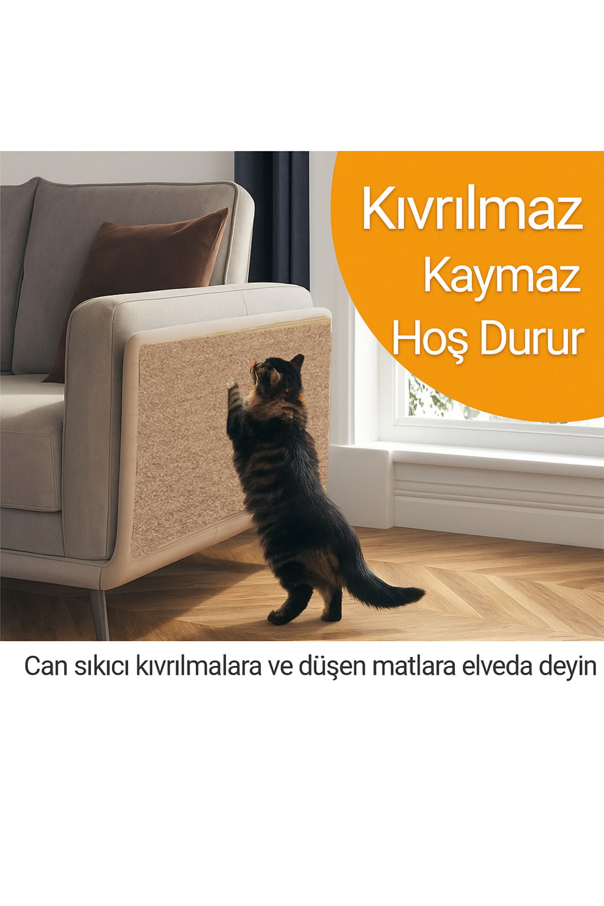 BEYLİNİ Kedi Tırmalama Halısı Yapışkanlı Her Yüzeye Uygulanabilir Kesilebilir Mobilya Koruyucu Mat (40X50)