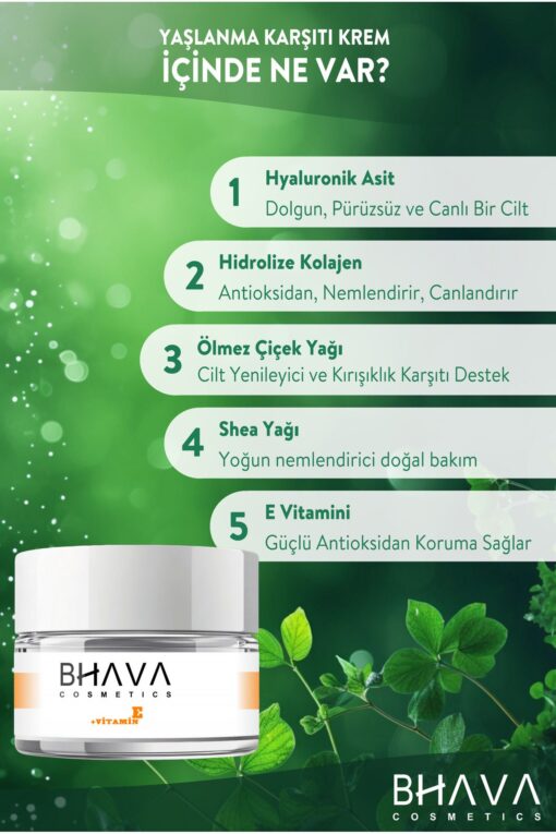 bhava cosmetics Krem Yaşlanma Ve Kırışıklık Karşıtı Krem Kolajen Ve Hyaluronik Asit 40 ml