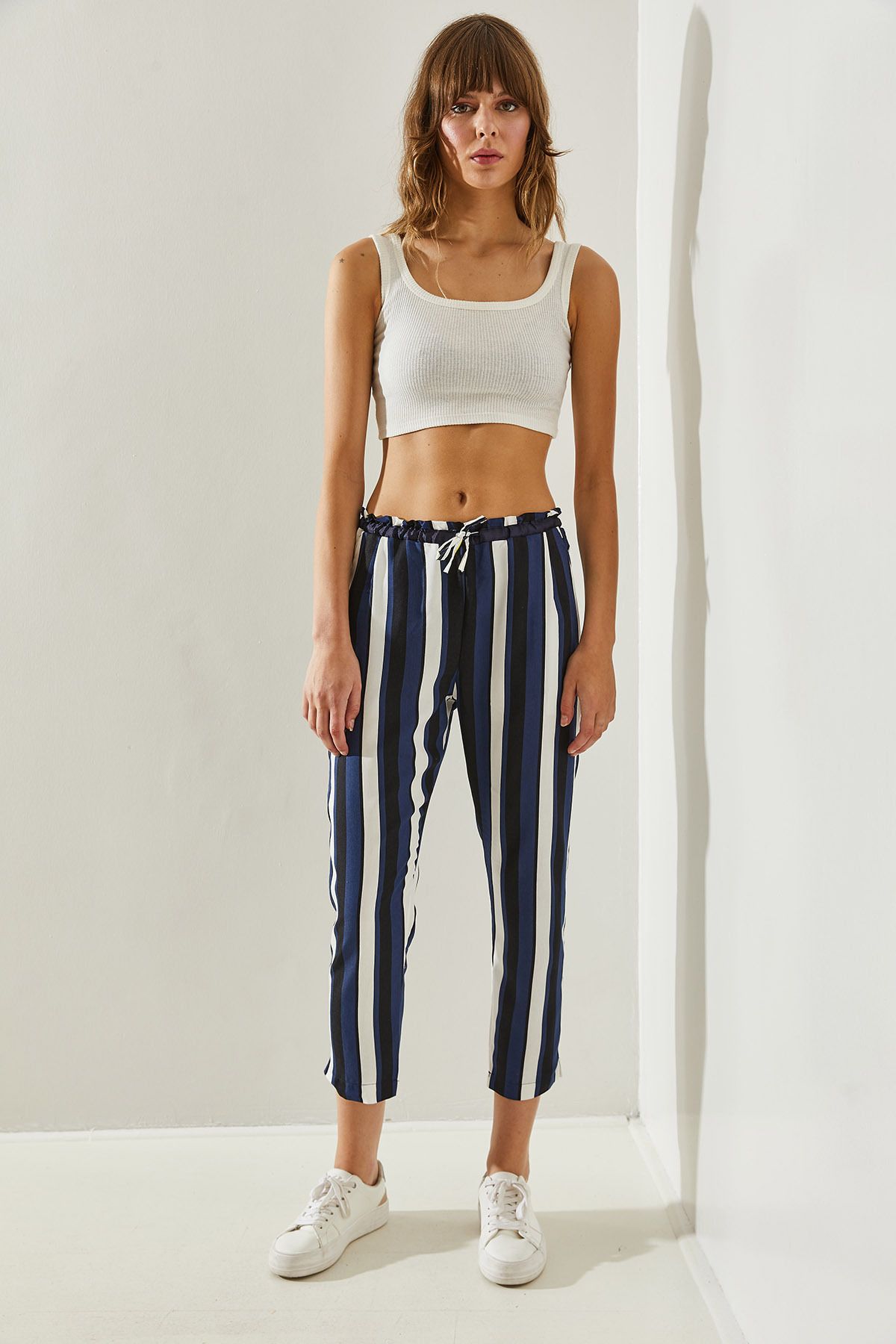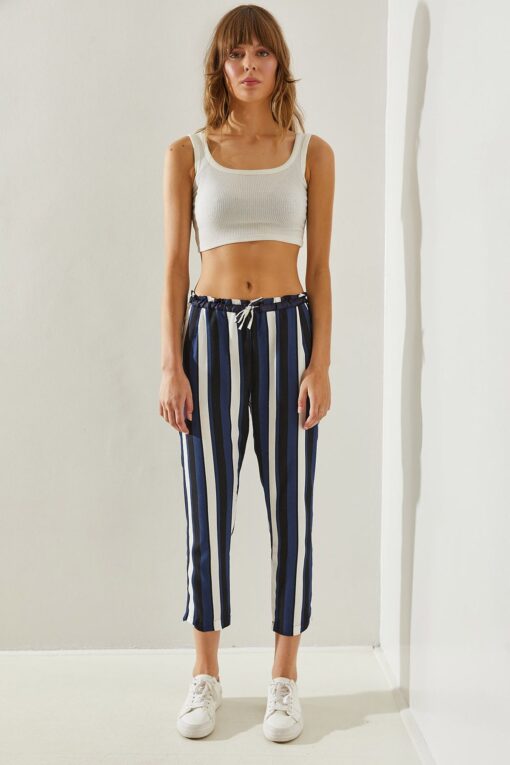 Bianco Lucci Çizgili Lastik Bel Bağlamalı Havuç Kesim Palazzo en ucuz fiyata kozmetikara.com sitemizden sipariş verebilirsiniz.