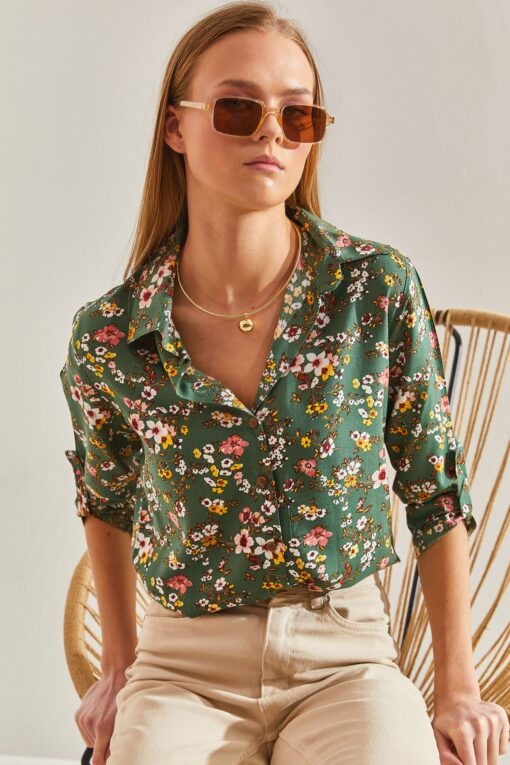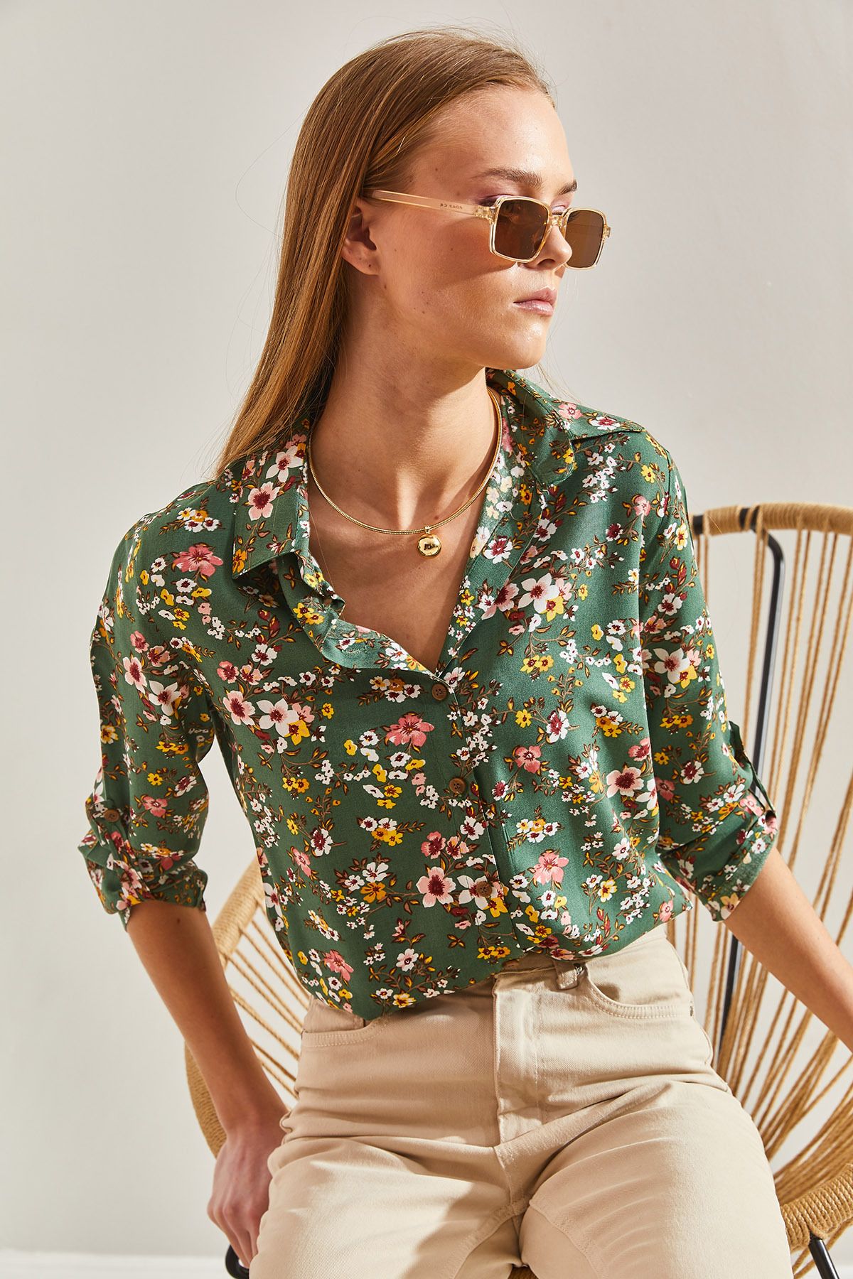 Bianco Lucci Kadın Kol Katlamalı Desenli Viskon Gömlek 60101030