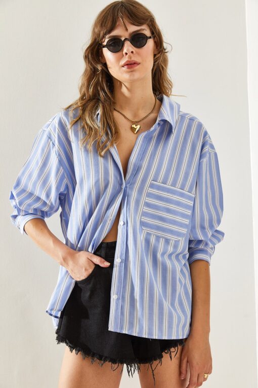 Bianco Lucci Kadın V Yaka Oversize Çizgili Gömlek 4458 60251331 en ucuz fiyata kozmetikara.com sitemizden sipariş verebilirsiniz.
