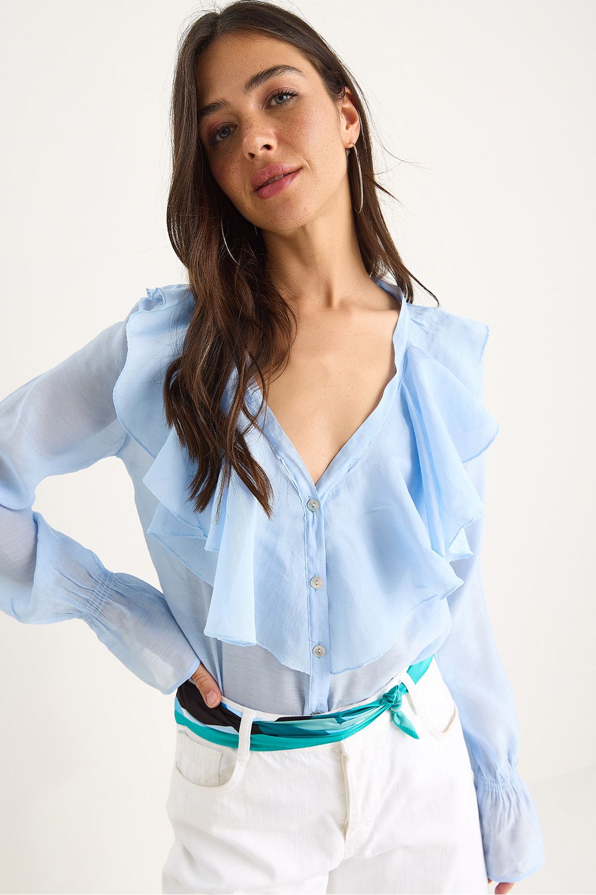 Bianco Lucci Kadın Yakası Fırfırlı Kolları Büzgülü Şık Gömlek 60283413 en ucuz fiyata kozmetikara.com sitemizden sipariş verebilirsiniz.