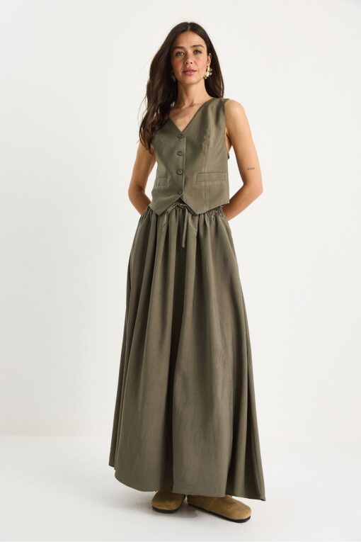 Bianco Lucci Kadın Yelekli Astarlı Cep Detaylı Kloş Etekli Takım 9294 60281004