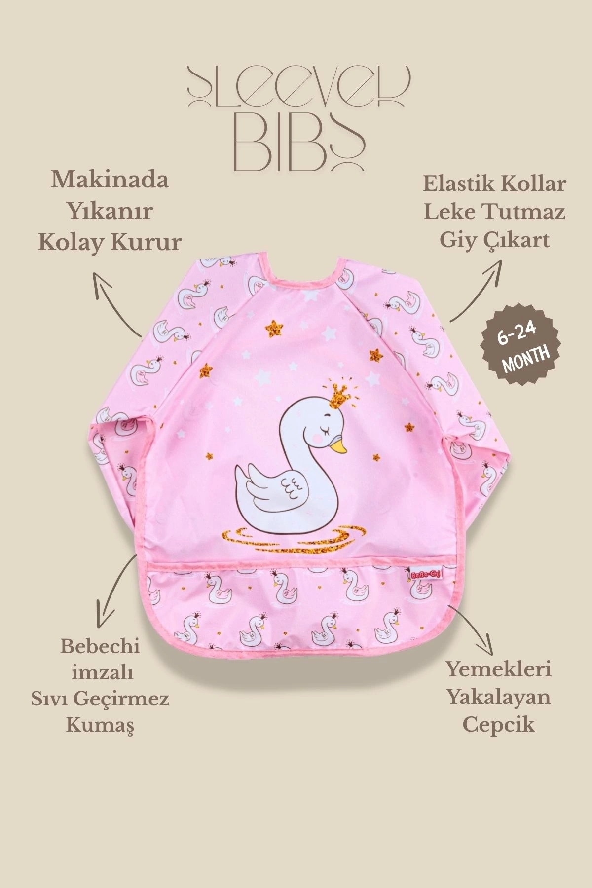 BibKing 2’Li Uzun Kollu Giyilebilir Sevimli Fil-Kuğu Desen Sıvı Geçirmez Aktivite ve Mama Önlüğü 6-24 AY