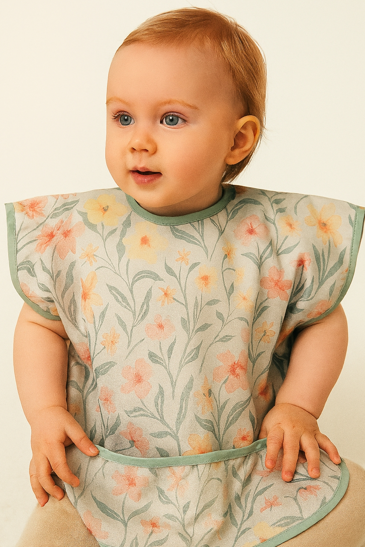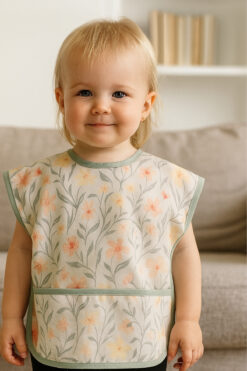 BibKing Çiçek Desen Kısa Kollu Sıvı Geçirmez Aktivite ve Mama Önlüğü Su Geçirmez Bebek Önlük