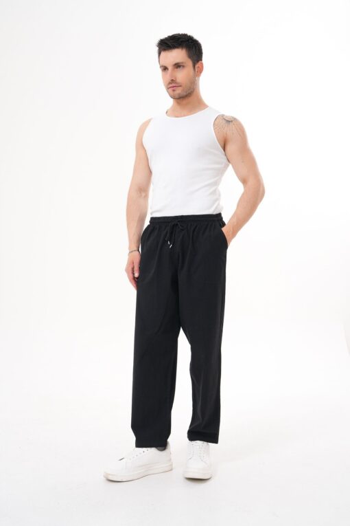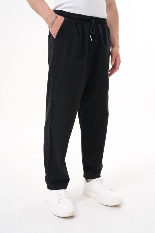 BigBrossBoutique Siyah Yazlık Pamuk Keten Karışımlı Rahat Kalıp Pantolon