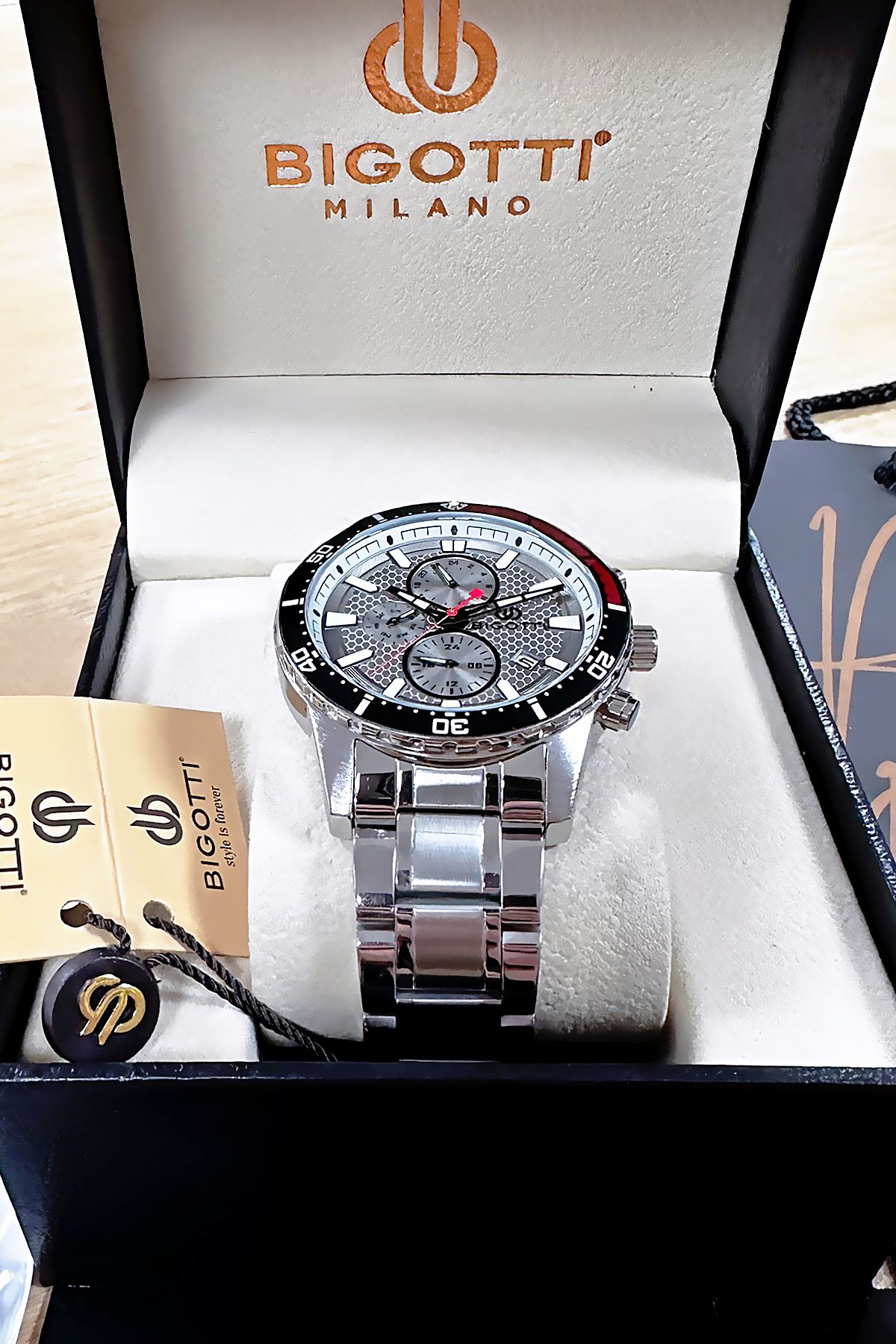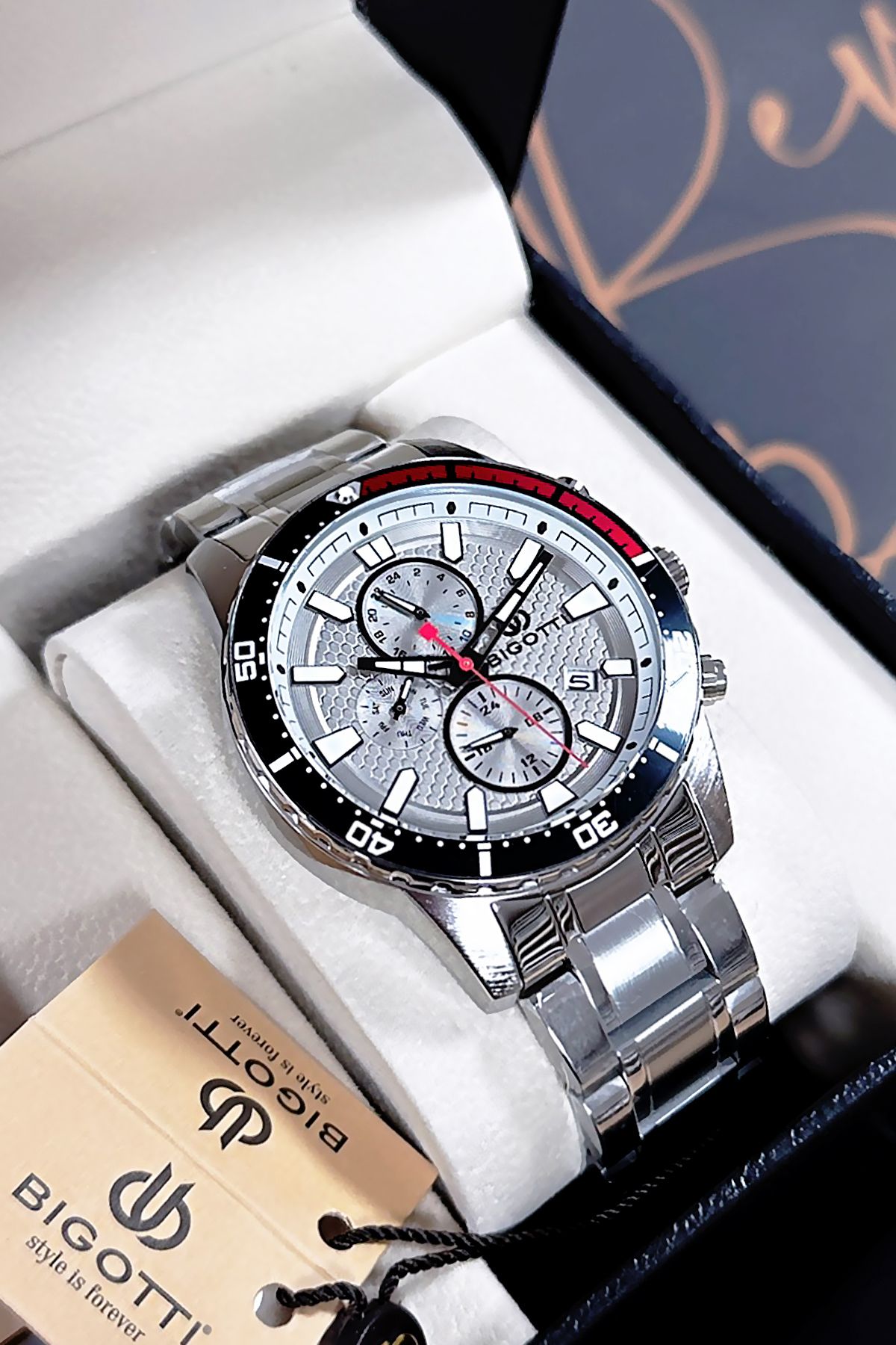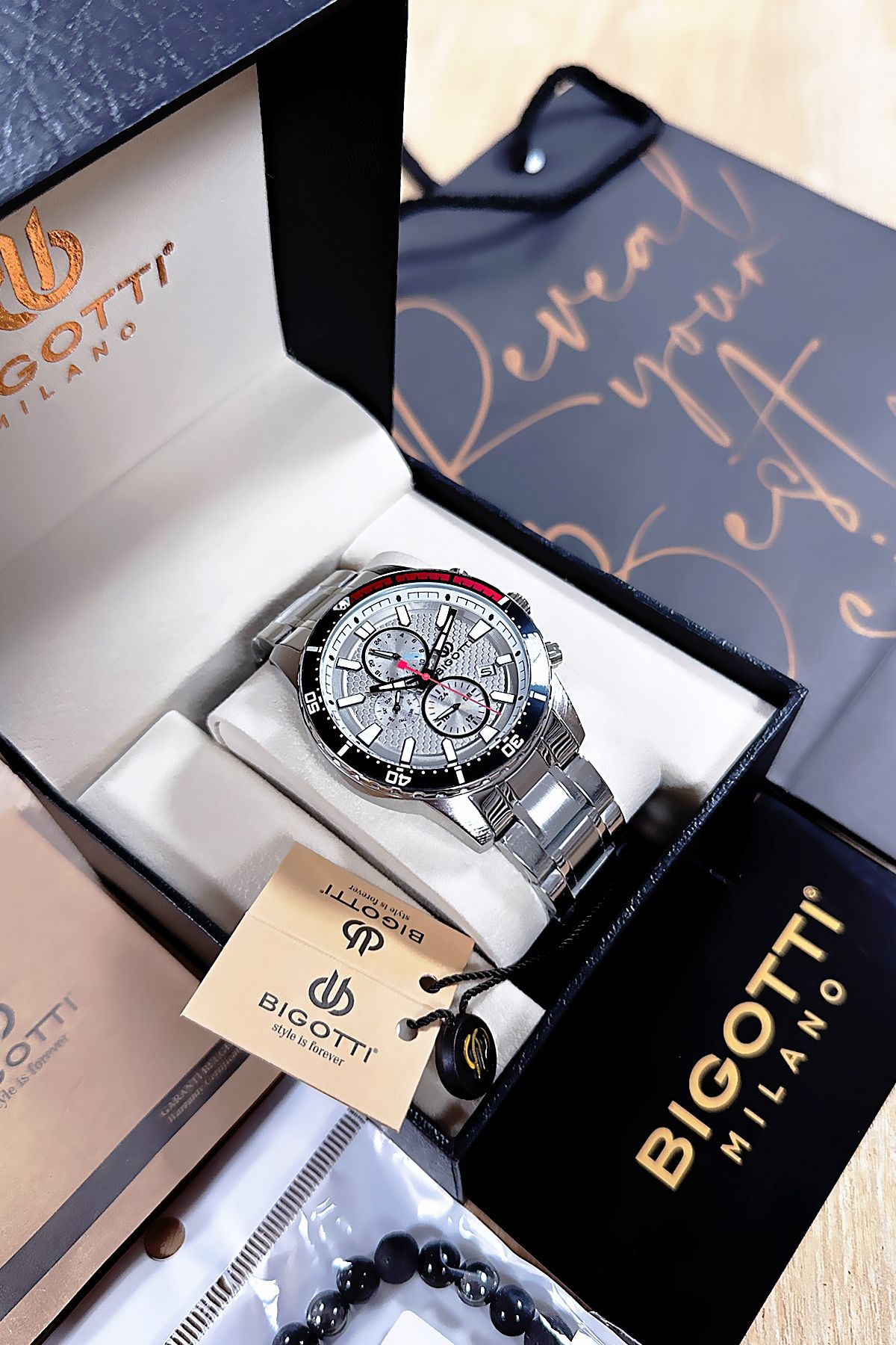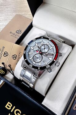 Bigotti Özel Kutulu 5 ATM Su Geçirmez Erkek Kol Saati Gumus Renk Çelik Kordon + Hediye Bileklik BME2022C2