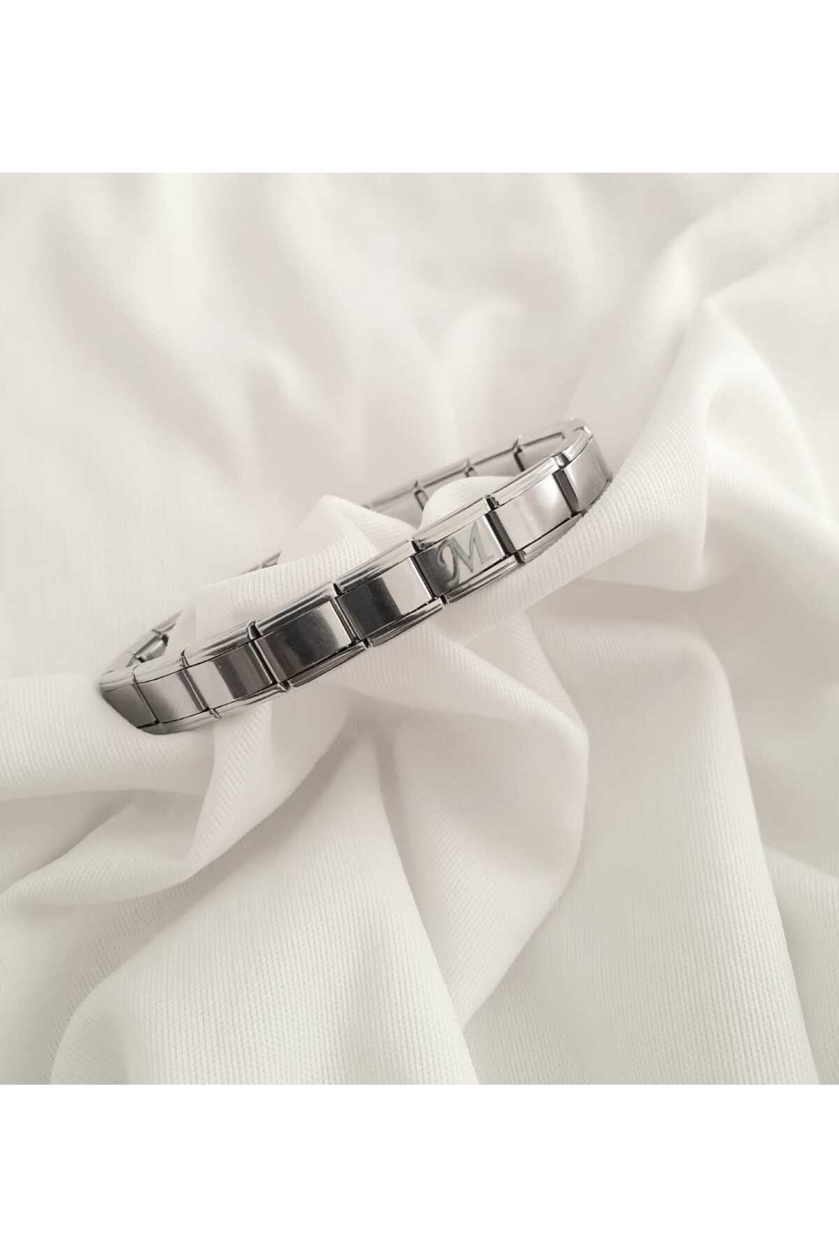 bijoux uniques Çelik M Harfli İtalyan Bileklik