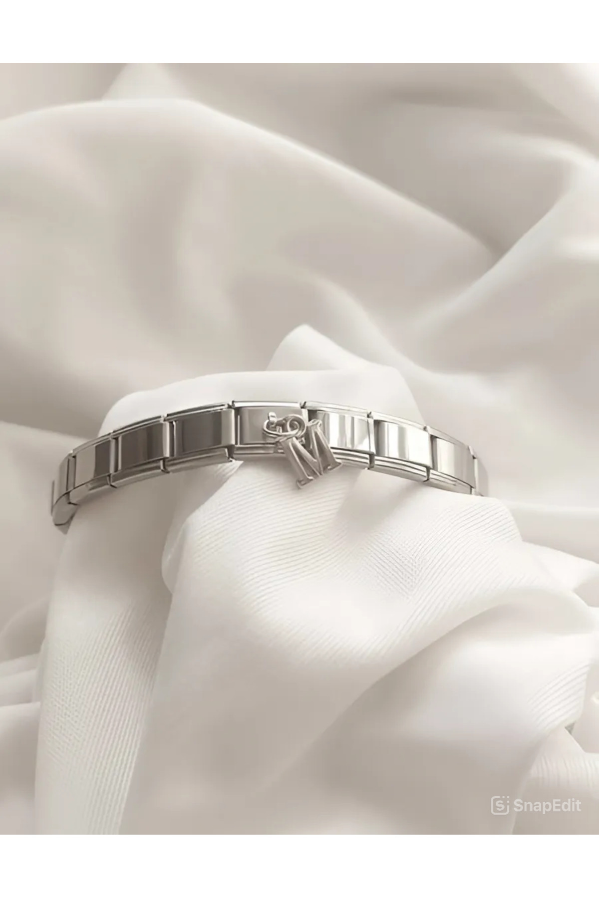 bijoux uniques Çelik Sallantılı M Harfli İtalyan Bileklik