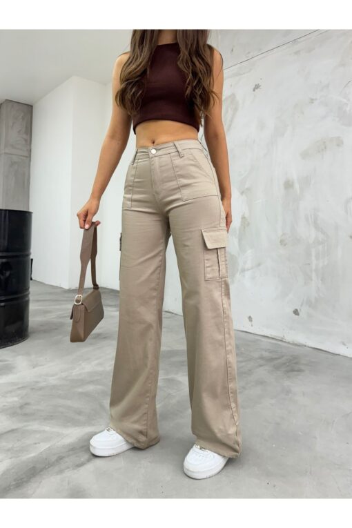 BİKELİFE Bej Kargo Cepli Likralı Yüksek Bel Wide Leg Pantolon ürünü ucuz fiyat, hızlı kargo ve kredi kartına 12 ay taksit imkanı ile hemen sitemizden sipariş verin.