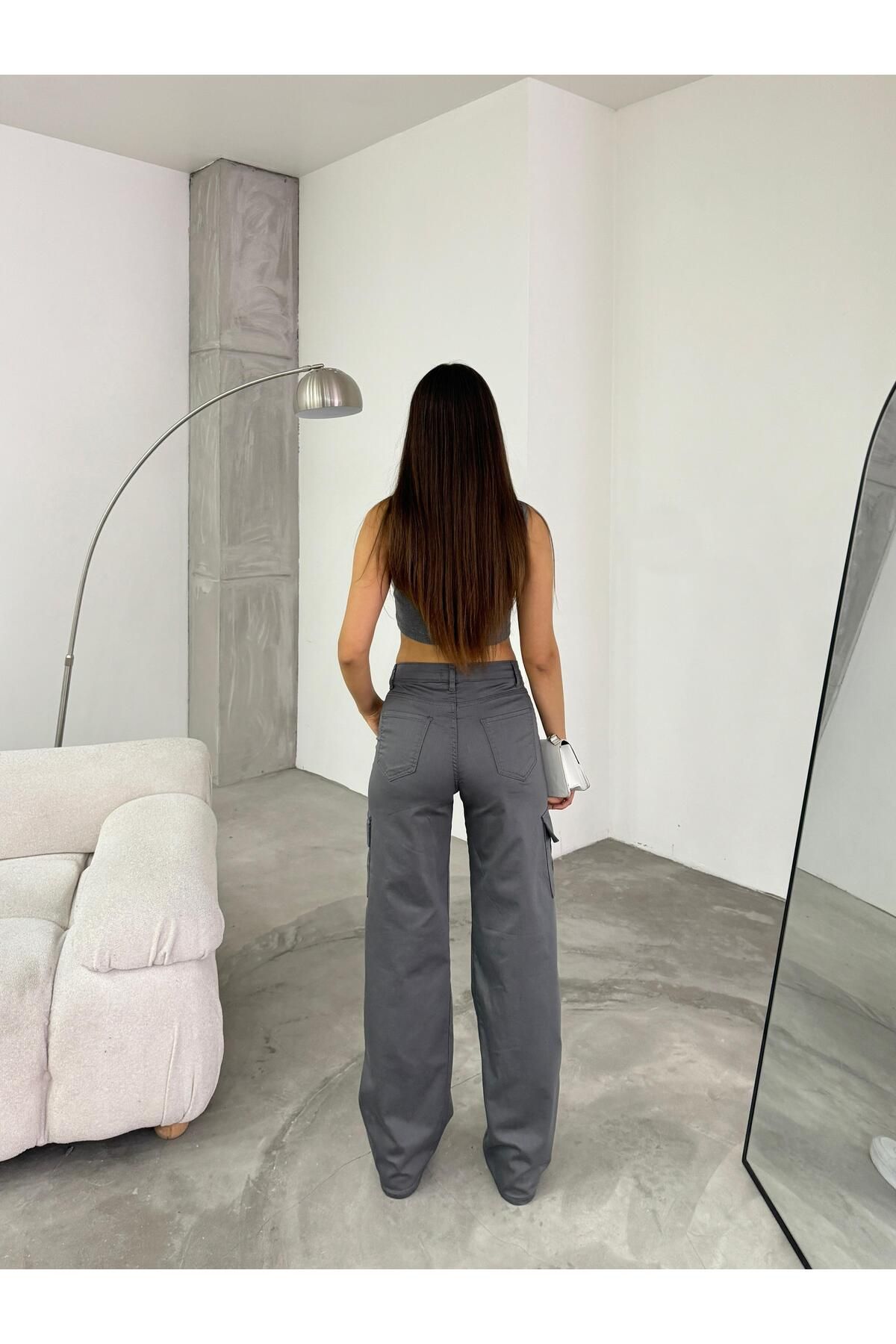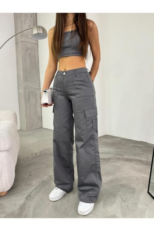 BİKELİFE Gri Kargo Cepli Likralı Yüksek Bel Wide Leg Pantolon ürünü ucuz fiyat, hızlı kargo ve kredi kartına 12 ay taksit imkanı ile hemen sitemizden sipariş verin.
