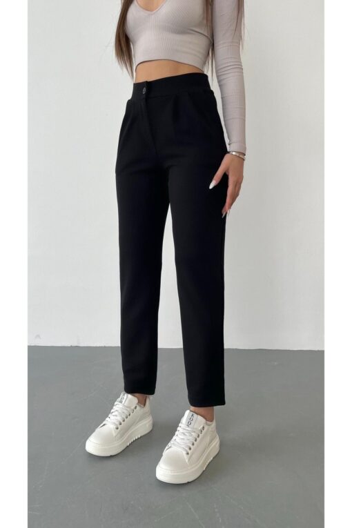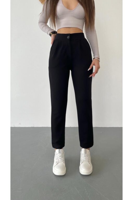 BİKELİFE Kadın Yüksek Bel Likralı Esnek Havuç Kesim Kumaş Pantolon
