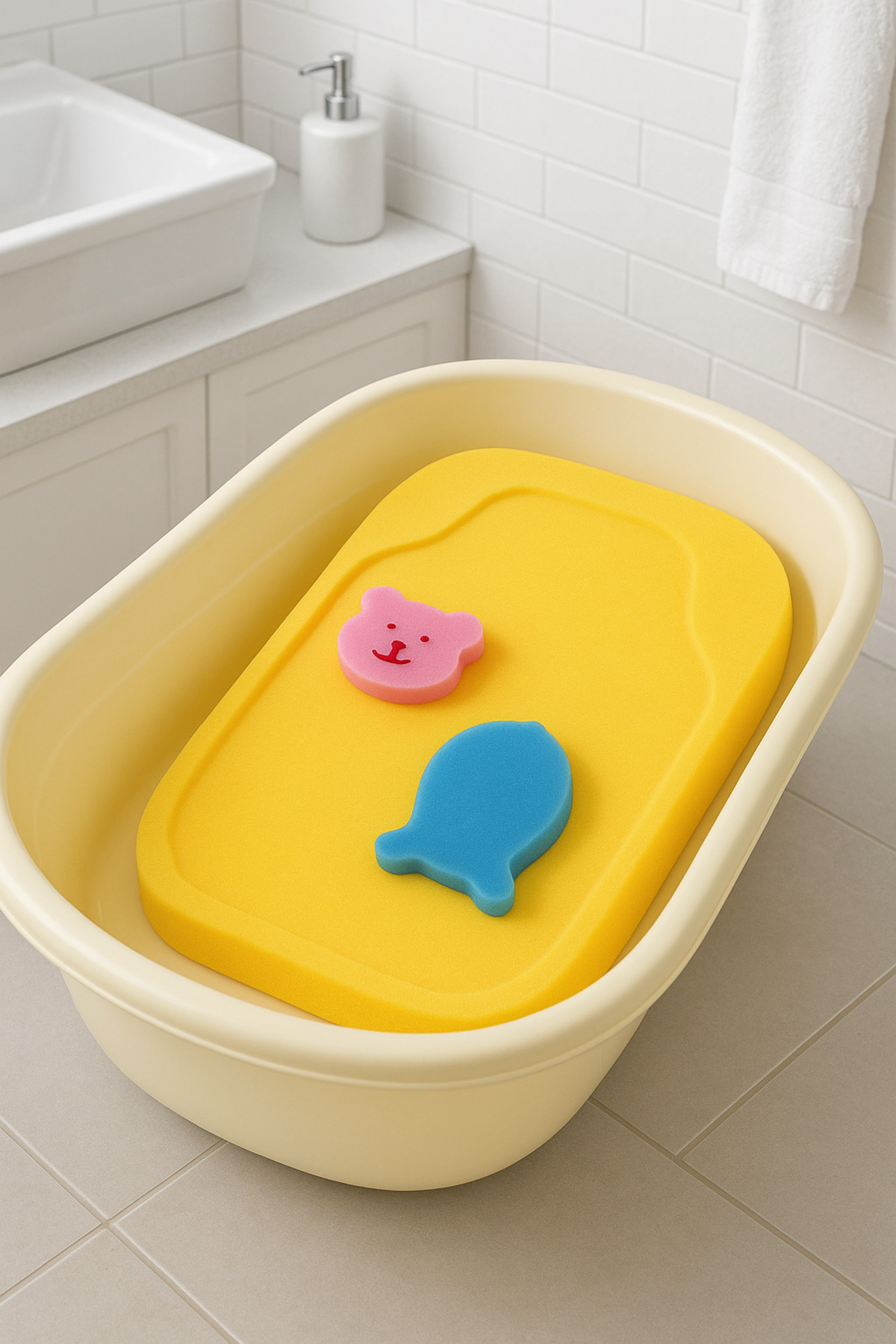 Bilge Trend Bebek Küveti Uyumlu Küvet Süngeri (2 adet yıkama süngeri hediyeli, minik süngerler değişik olabilir)