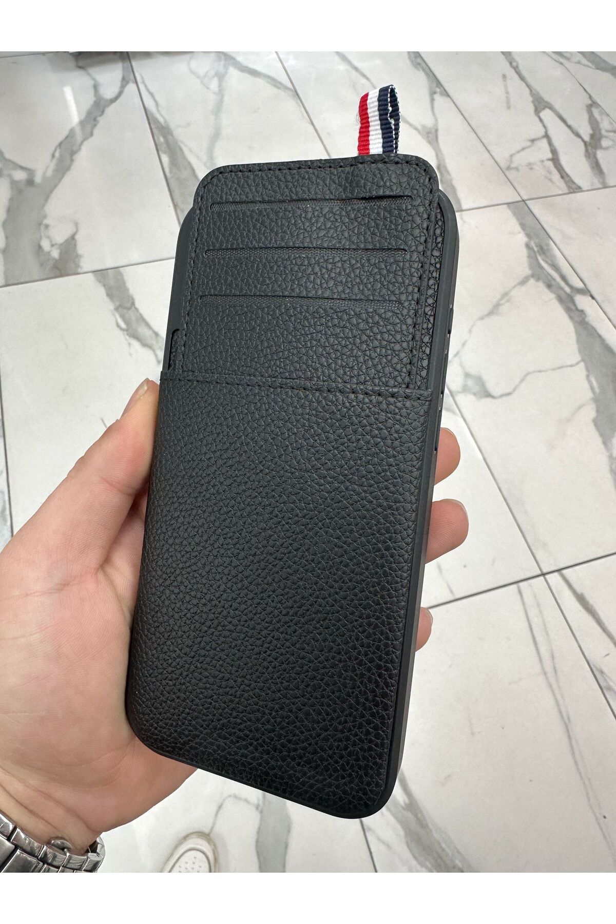 Bilişim Akademi iPhone 16 Pro Uyumlu Deri Kılıf Kartlıklı Kılıf Arkası Cüzdanlı Kılıf Kart Koymalı Kılıf Siyah