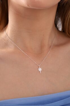 Bilsen Store 925 Ayar Gümüş Zincirli Beyaz Taşlı Kutup Yıldızı Kolye