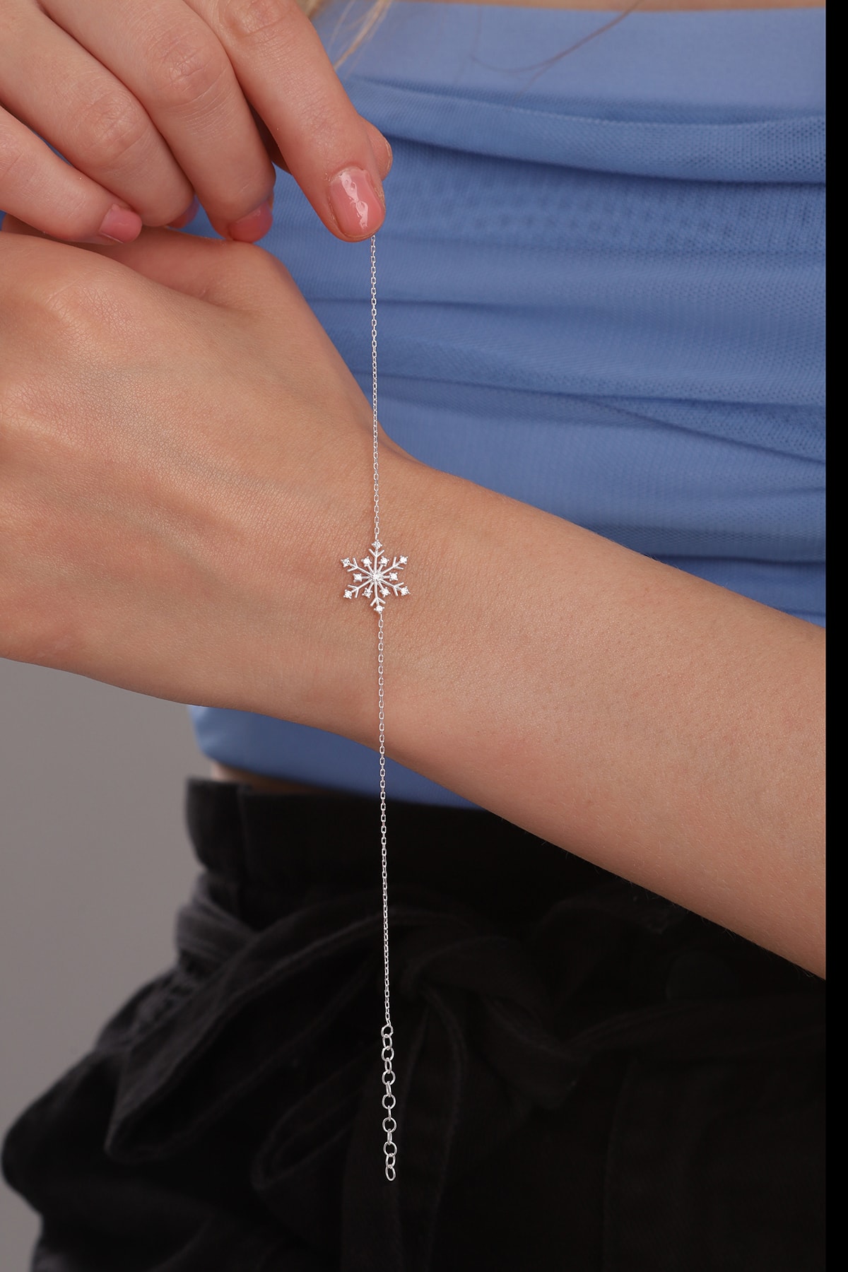Bilsen Store 925 Ayar Gümüş Zincirli Beyaz Zirkon Taşlı Kar Tanesi Bileklik