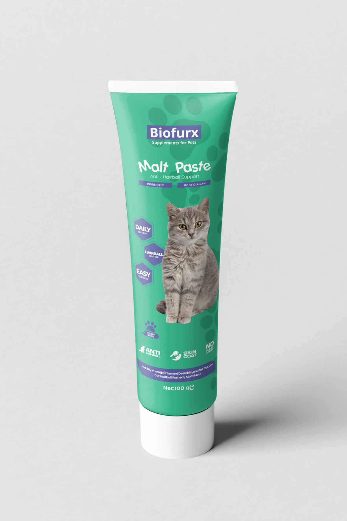 Biofurx Kedi Malt Macunu 3’lü Set 3x100g | Tüy Yumağı Önleyici Macun | Tamamlayıcı Yem | Tasma Hediyeli