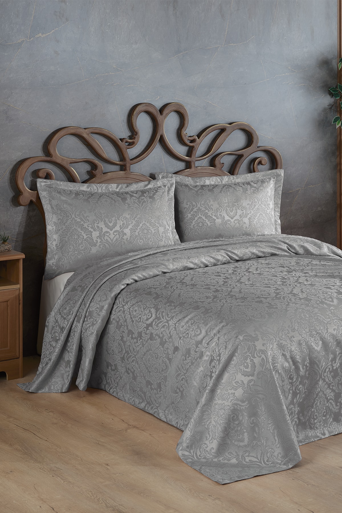 BİRHOME Sierra Jakarlı Şönil Çift Kişilik Yatak Örtüsü (gri)