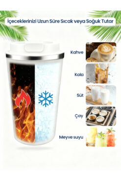 BLOOMPİCKS 380 mL Şık Tasarım Çift Katmanlı Paslanmaz Çelik Termos Bardak Sızdırmaz Sıcak-Soğuk Araç Uyumu